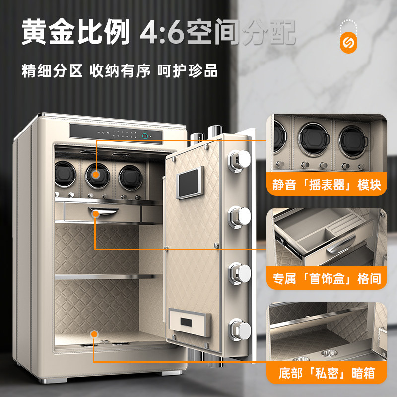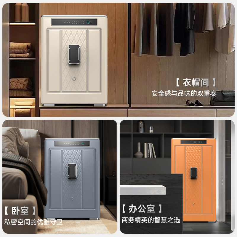 欧奈斯保险柜家用小型SSS国标认证皮革智能保险箱新款摇表器指纹密码防盗家庭床头柜嵌入式一体搬不走防撬