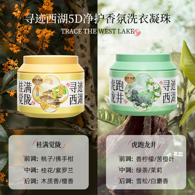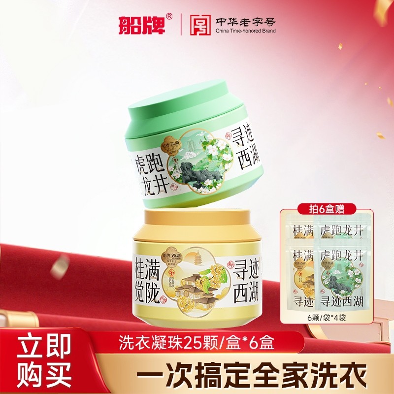 船牌西湖洗衣凝珠25颗6盒留香珠五腔护色柔顺洁净桂花龙井家庭装
