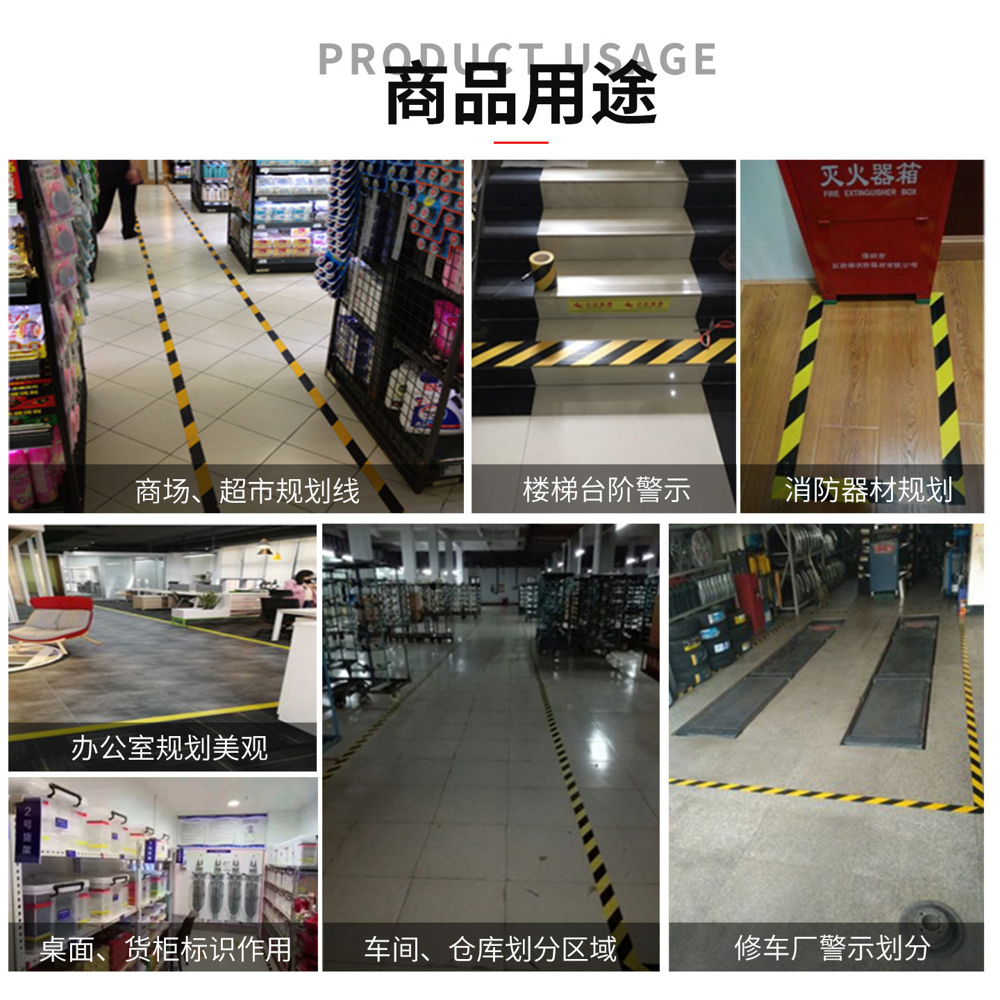 3j警示胶带黄黑双色地标贴地面线警戒无尘车间隔离线5S标识定位划分区域pvc黑黄地板胶带33米彩色斑马线胶带