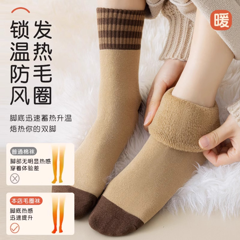厚加厚袜子女款秋冬季加绒保暖中筒袜冬季毛圈长筒毛绒月子袜吸汗