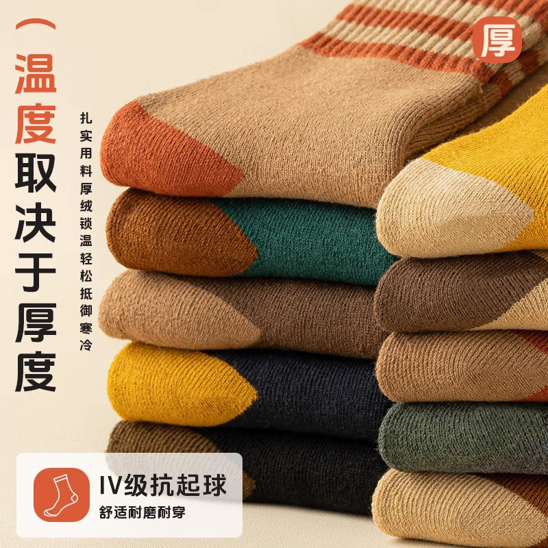 【送3双同款】秋冬新疆棉厚款中筒袜纯棉纱线毛巾底袜子男长袜女