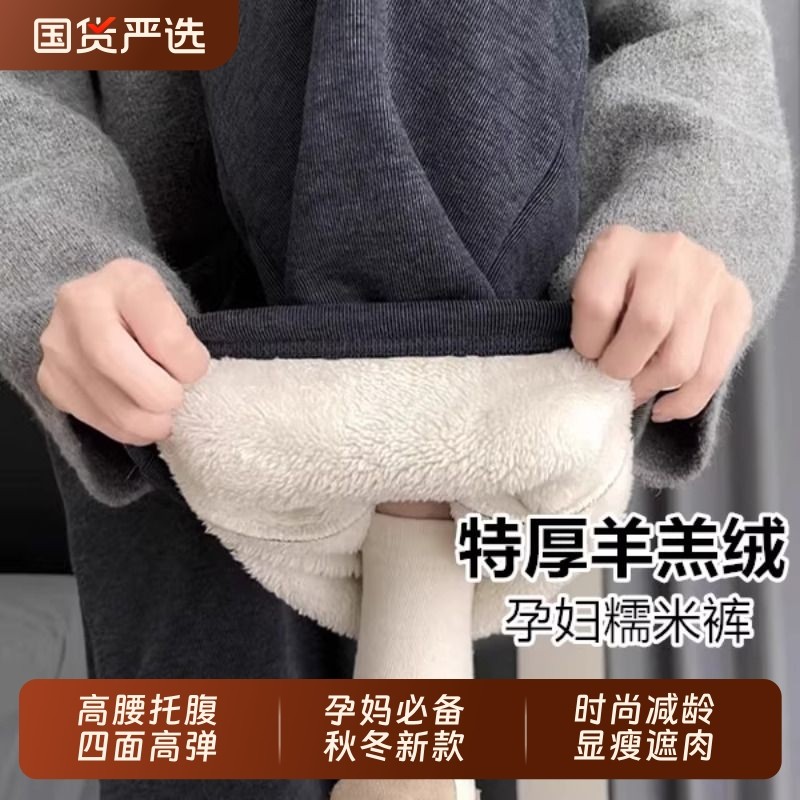 孕妇裤外穿糯米裤加绒加厚大码阔腿打底长裤装新款孕期冬季孕妈
