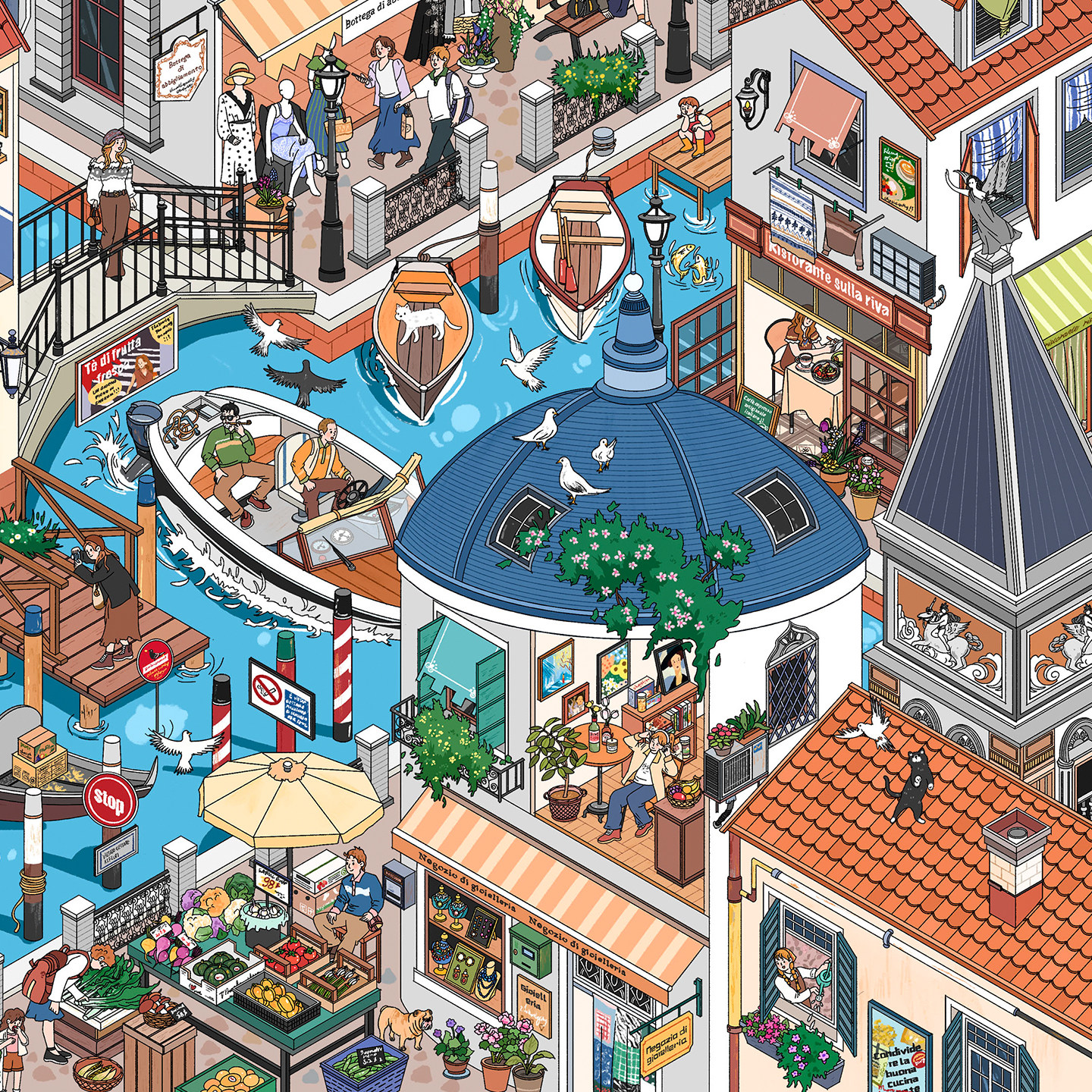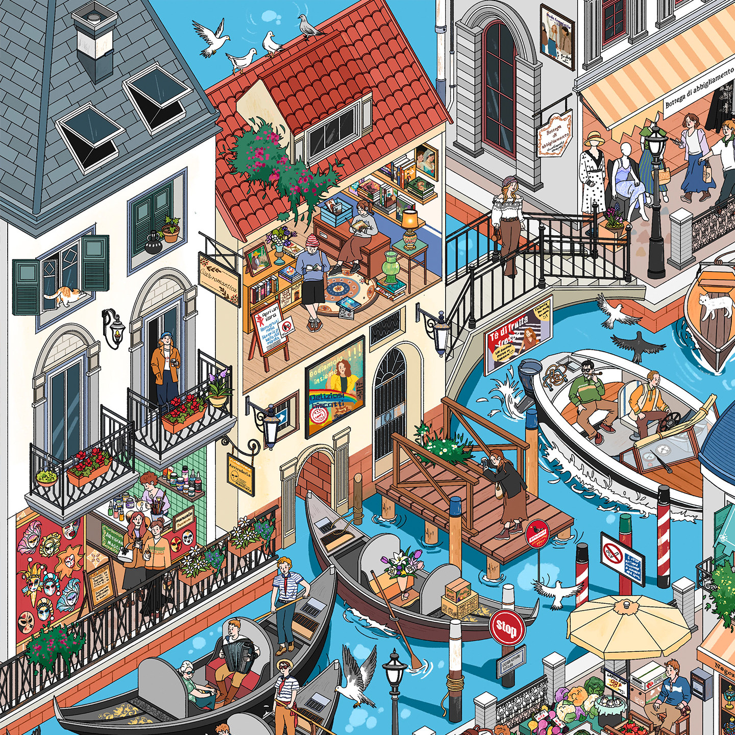 威尼斯造景贴纸妍莜17.0特油亮膜一牙西瓜子画风高难度微缩场景3D立体小屋贴画手帐手工diy玩具女孩新年礼物