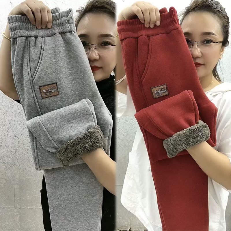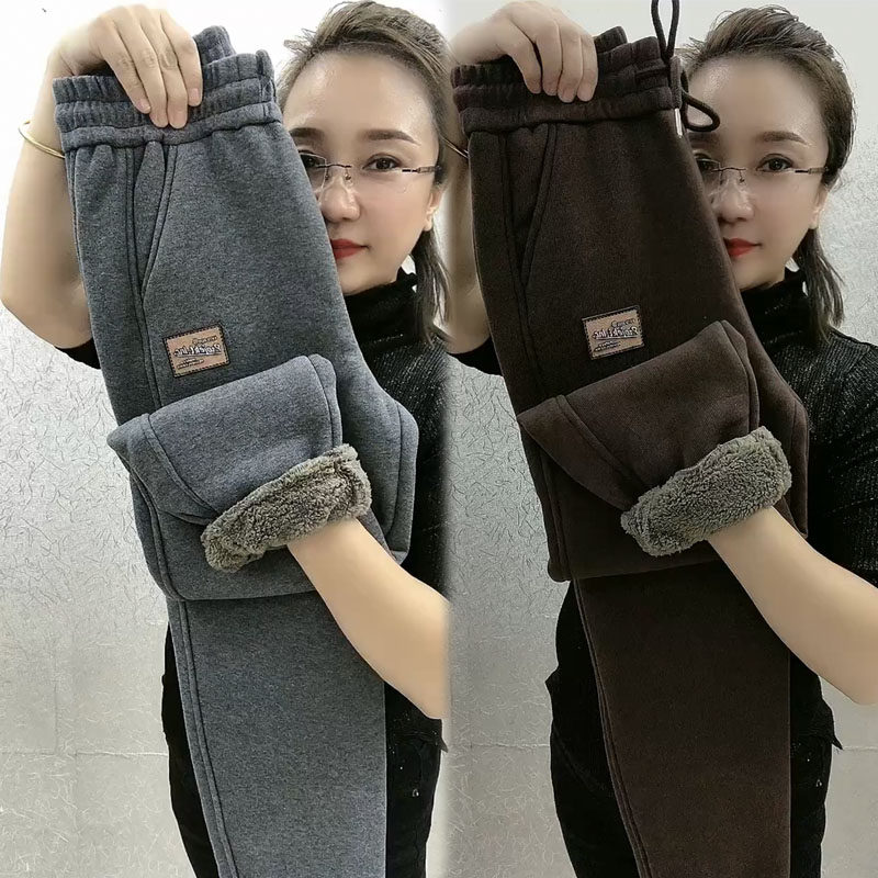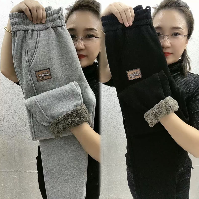 加绒加厚羊羔毛休闲卫裤女秋冬新款保暖束脚哈伦裤高腰宽松运动裤