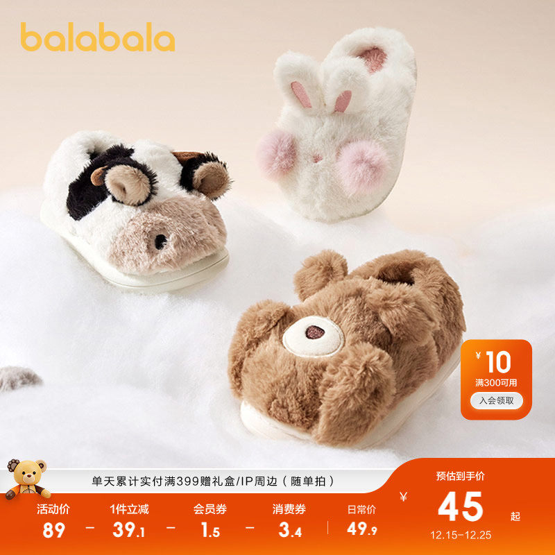 巴拉巴拉儿童棉拖鞋包跟男童女童毛绒动物棉鞋潮流秋冬家居鞋舒适