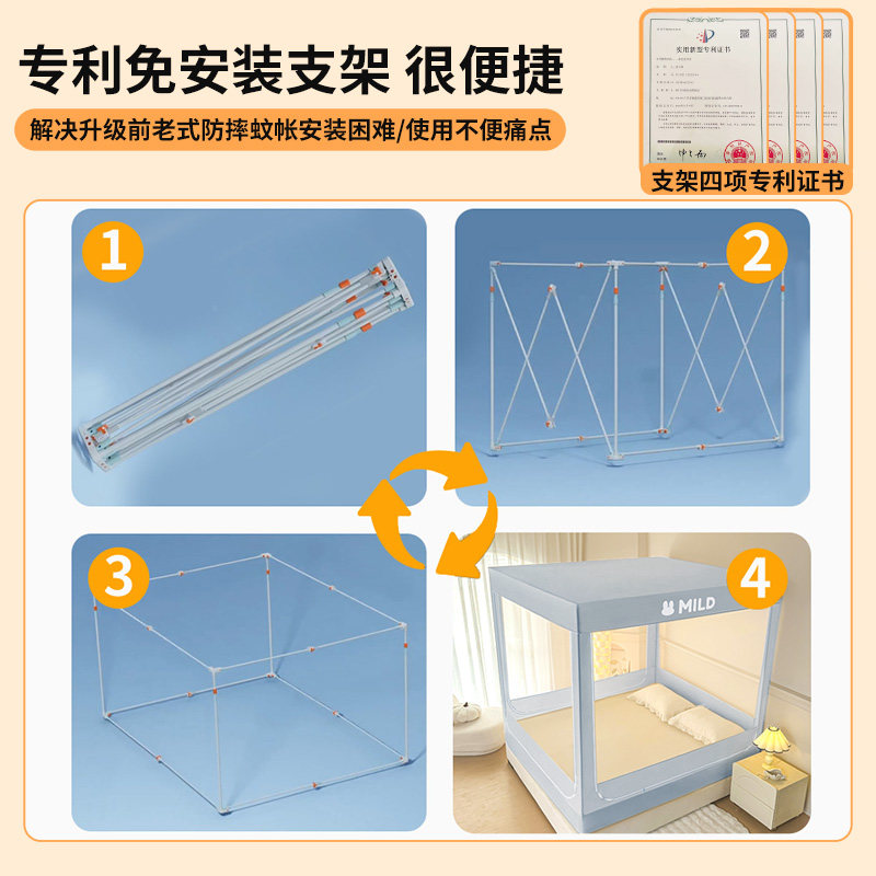 丸丫V2防摔蚊帐婴儿2025新款专用儿童纹帐家用卧室防掉床全底全罩
