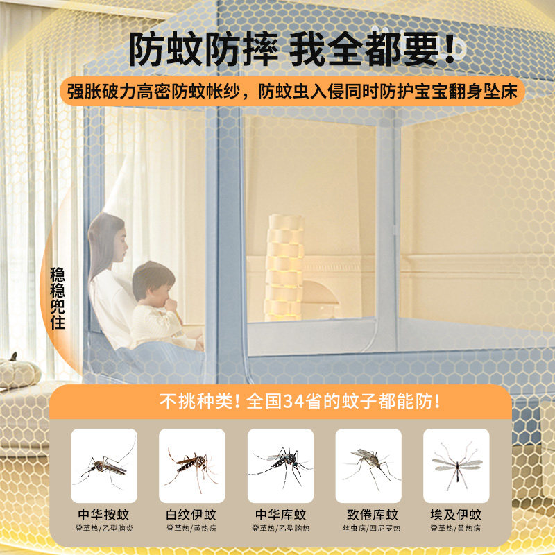蚊帐卧室防掉床婴儿防摔帐2026新款夏季全罩儿童家用床笠蒙古包
