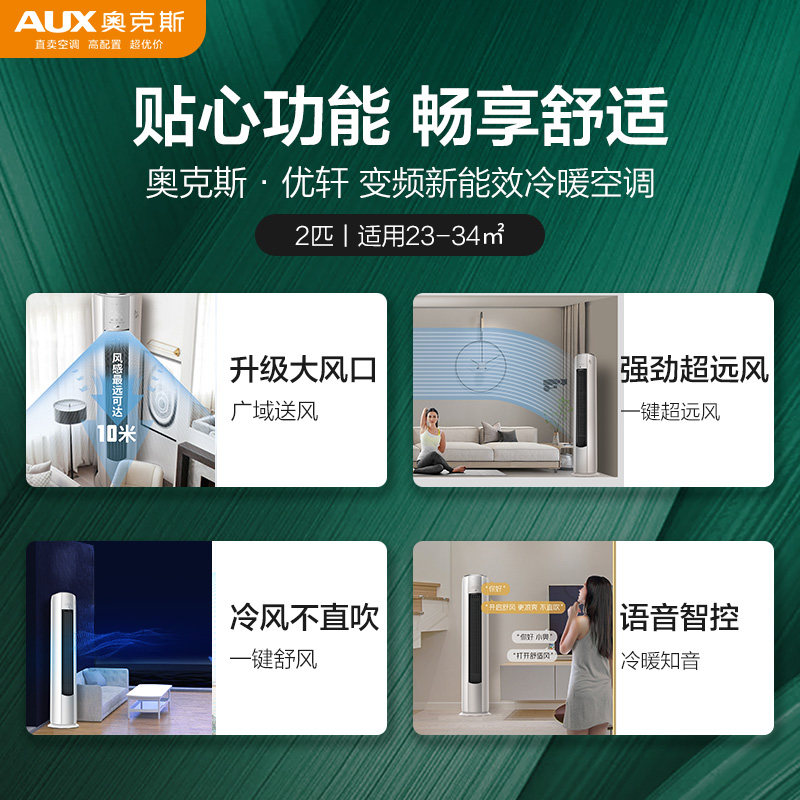 奥克斯空调一级2匹立式柜机家用客厅智能语音优轩官方旗舰店