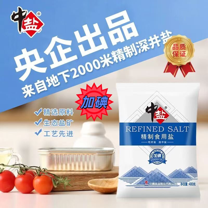 加碘精制食用盐调味盐400g/袋家用炒菜烹饪腌制细盐健康盐