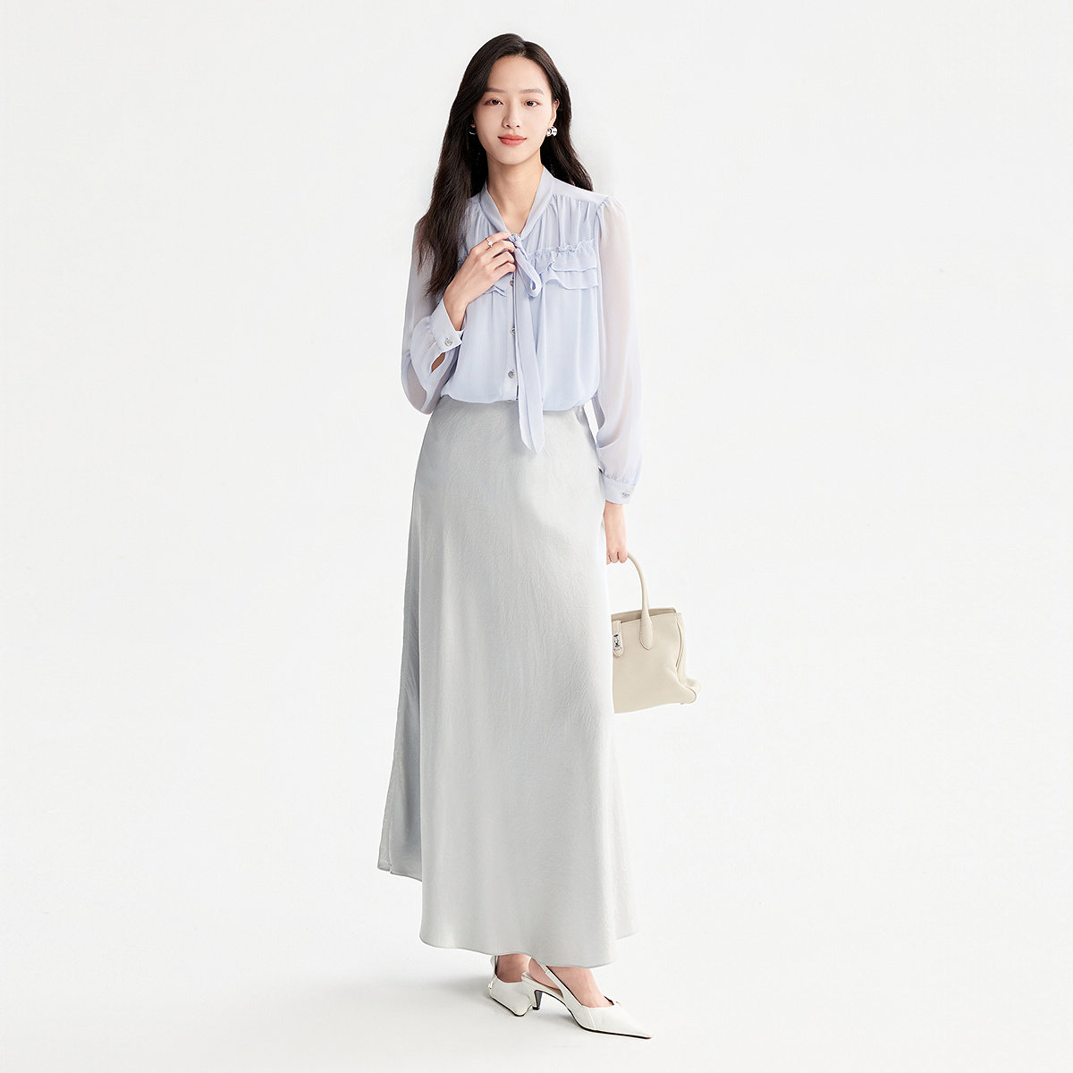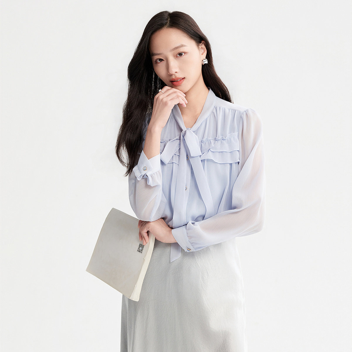 FINITY菲妮迪衬衫26年夏季新款简约设计感飘带领优雅名媛风上衣女