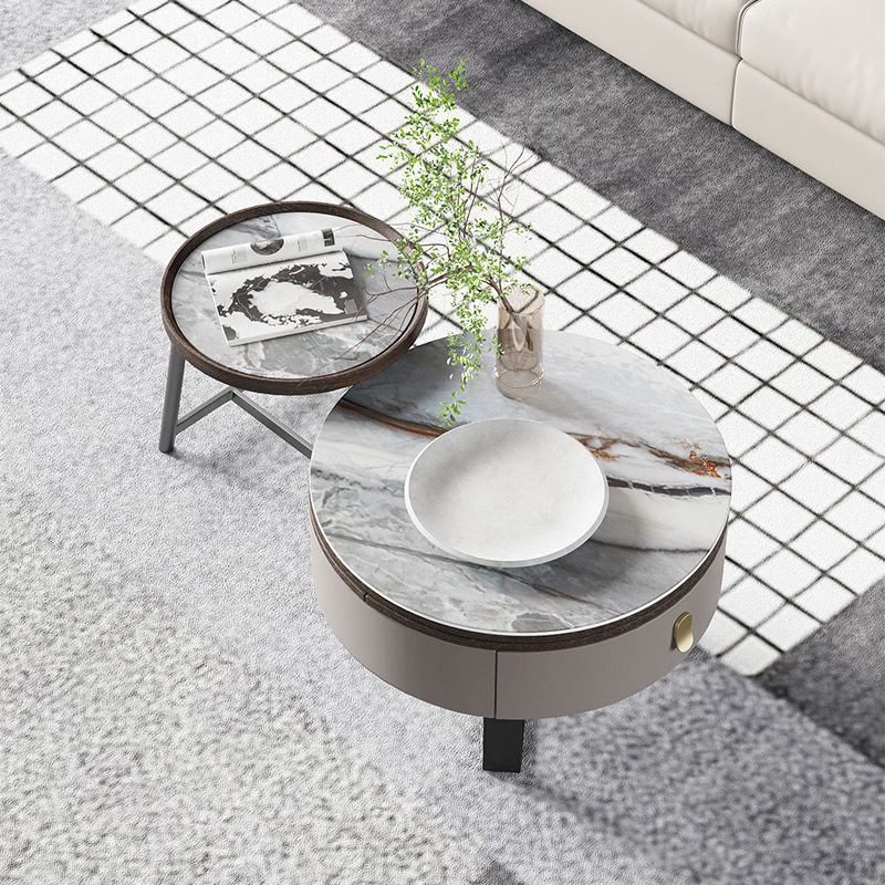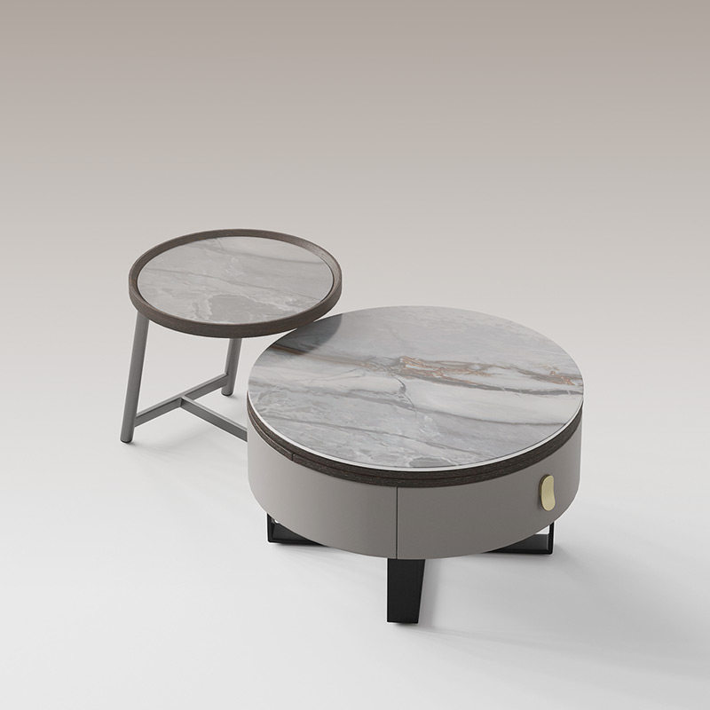 慕思集团旗下艾慕茶几现代简约组合小户型客厅家用圆形双拼岩板