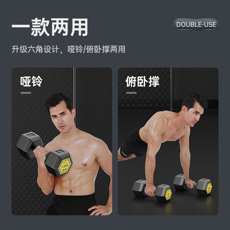 健身综合练习六角哑铃男士包胶家用运动器材5KG10小哑铃锻炼重量