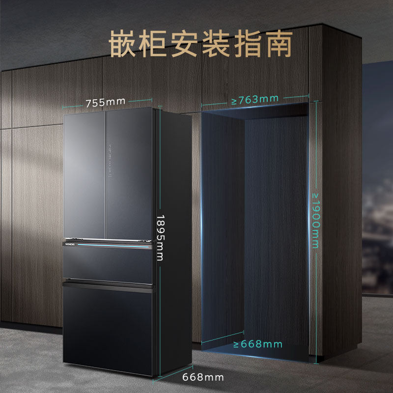 西门子461L双系统循环多门超薄零嵌家用电冰箱超氧一级能效349C