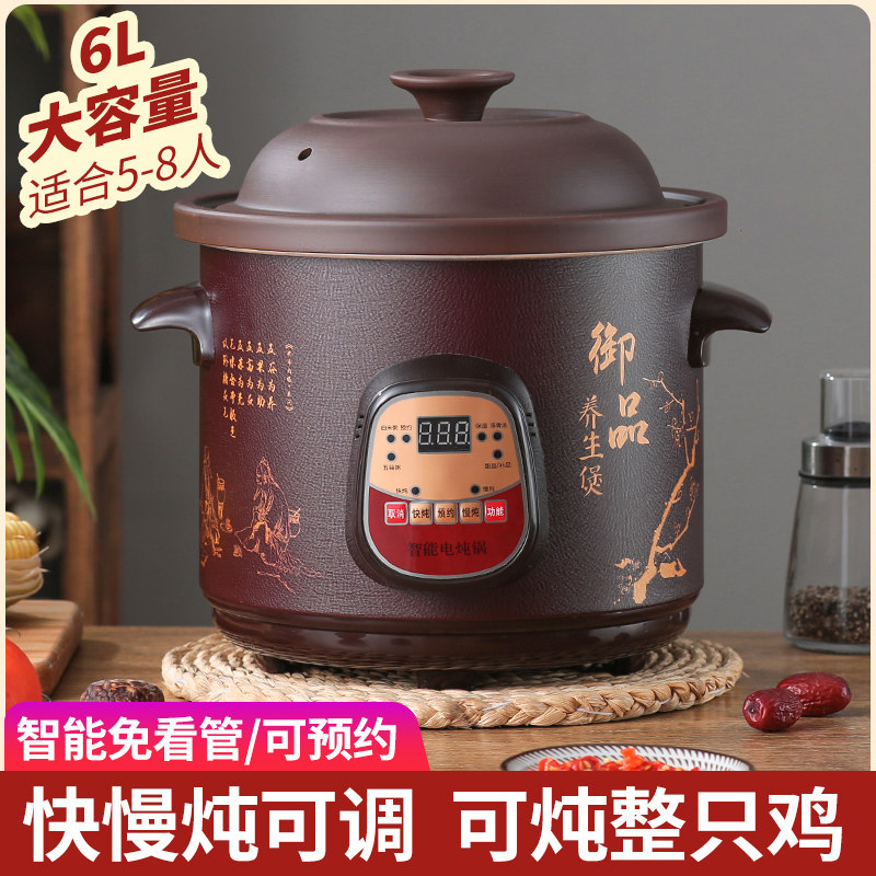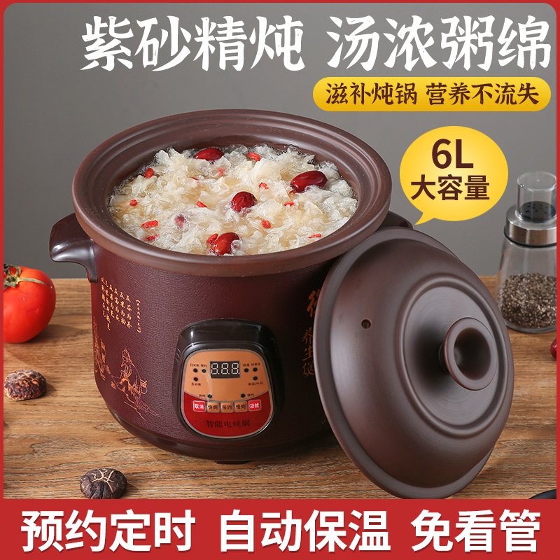 苏泊全自动2.5-6L电炖锅陶瓷煲汤家用熬煮粥神器多功能养生紫砂锅