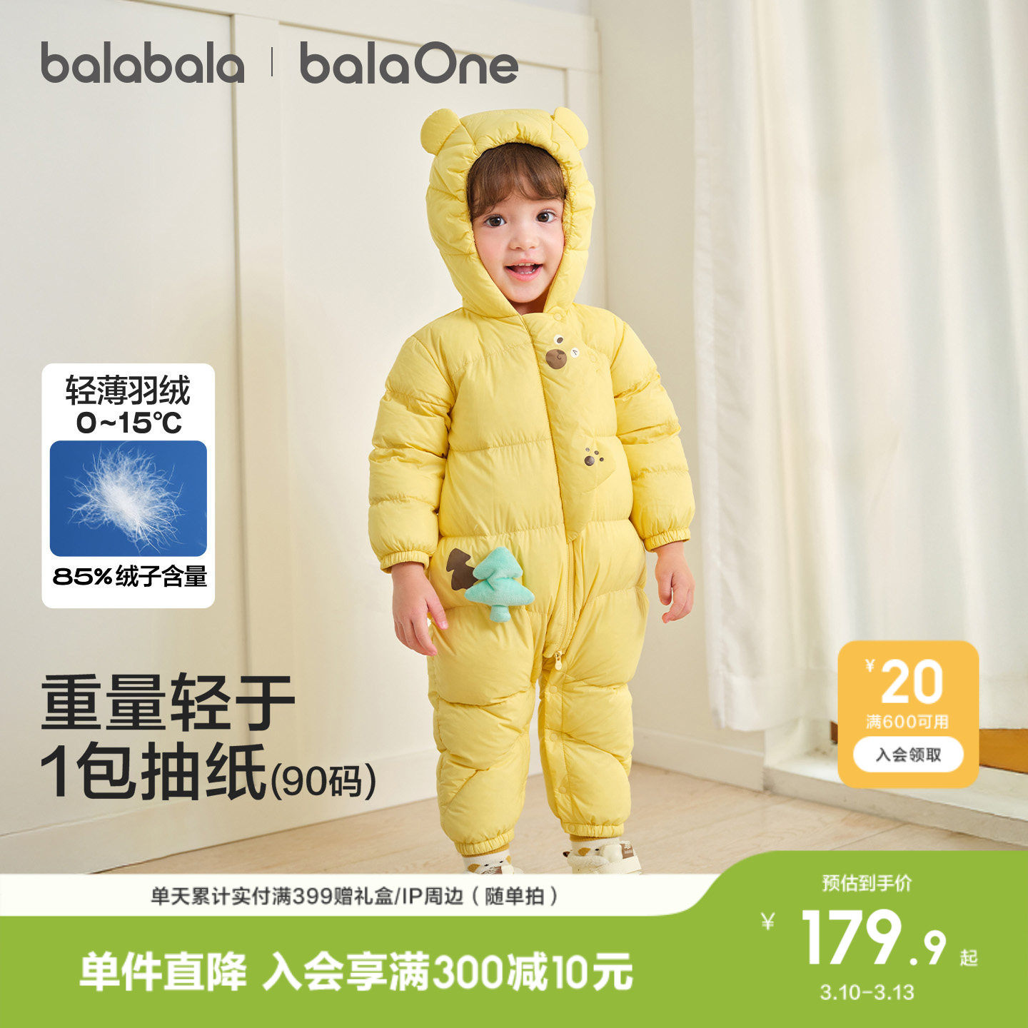 巴拉巴拉童装婴儿羽绒服轻薄冬装连体衣2026新款男女宝宝衣服爬服