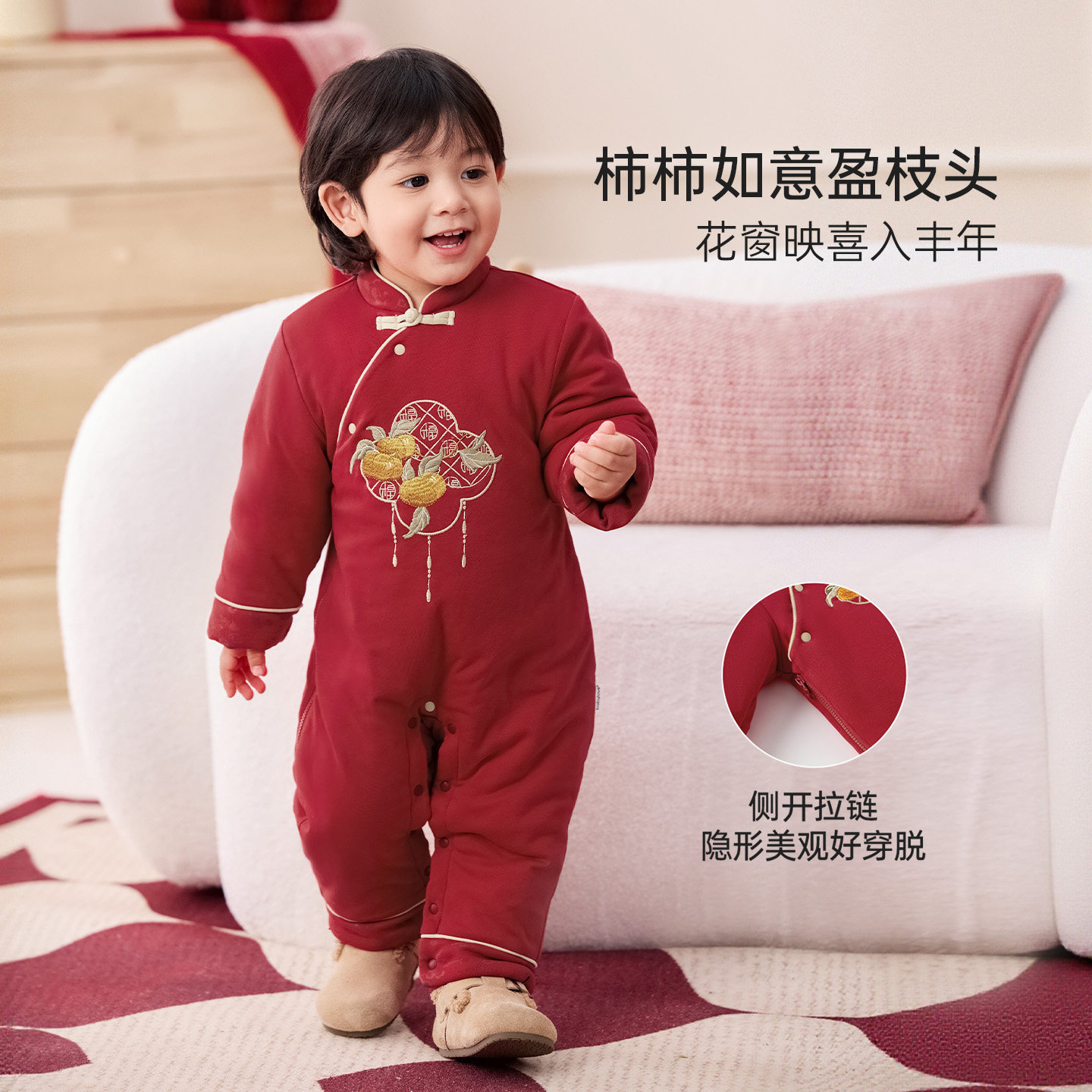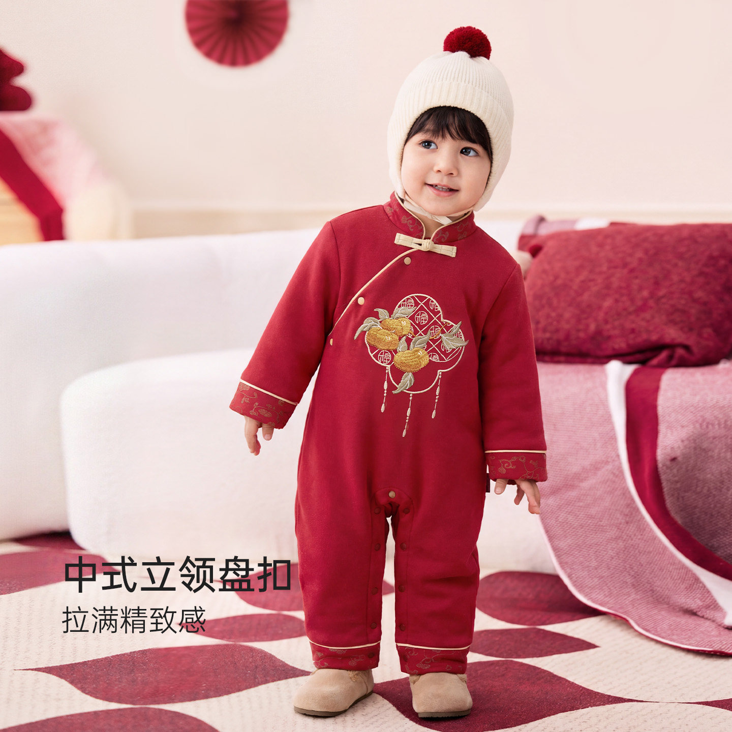【清仓】babylove婴儿连体衣冬季夹棉红色宝宝保暖衣服喜柿映丰