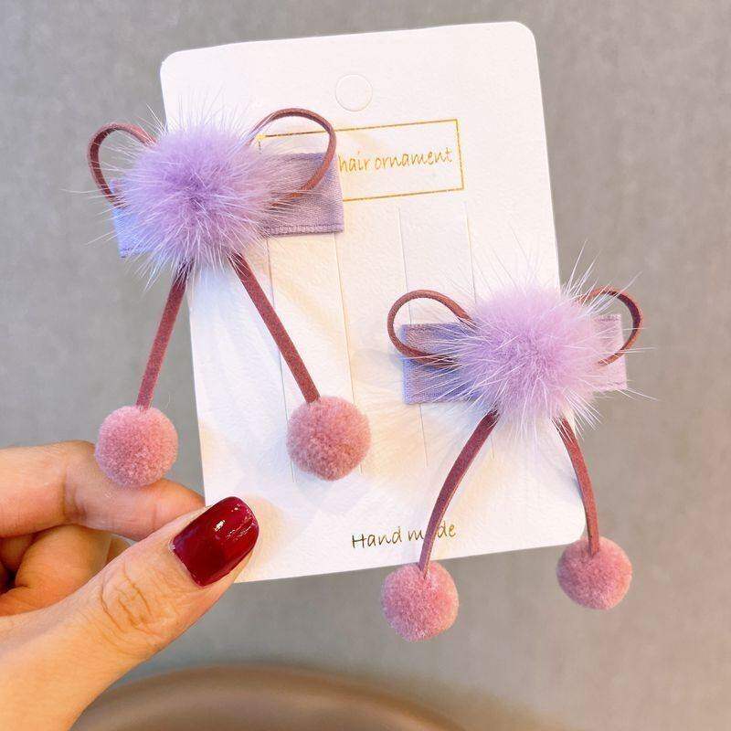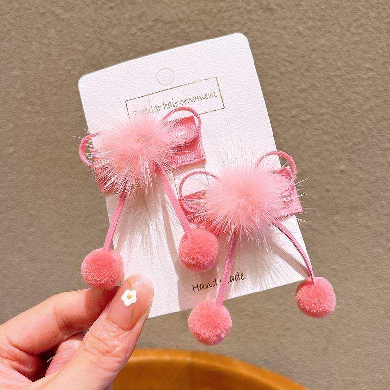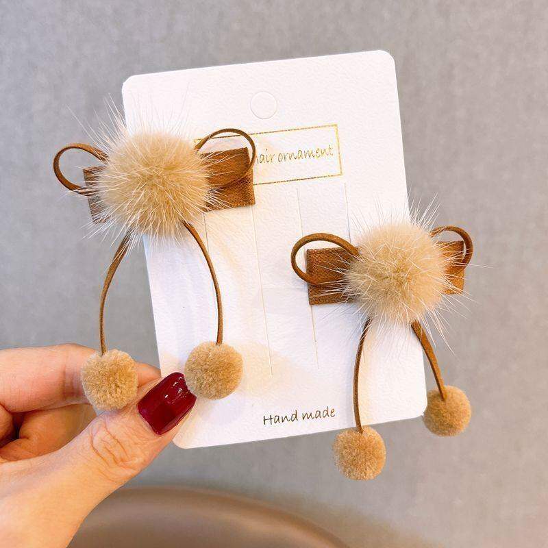 红色蝴蝶结发夹女秋冬毛毛流苏bb夹侧边夹儿童古风汉服配饰发卡子