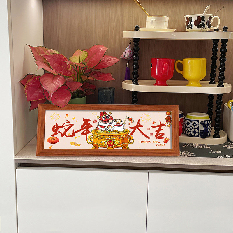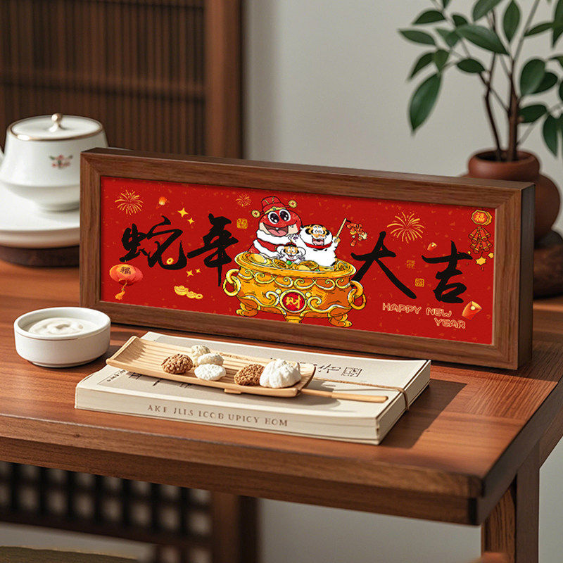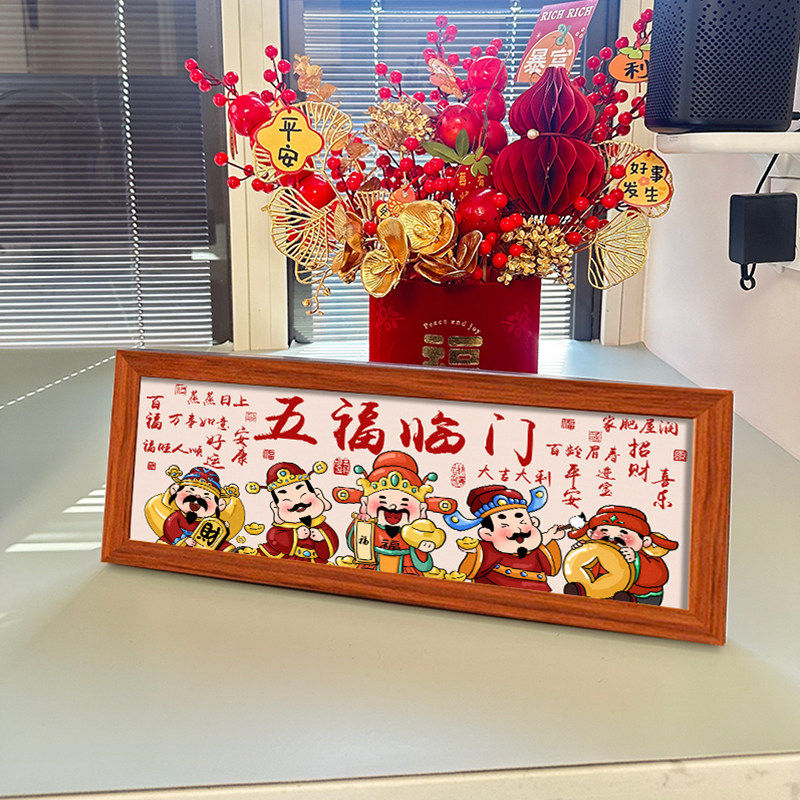 财神爷摆件桌面五福临门相框摆台新年装饰画客厅玄关餐厅卧室年味