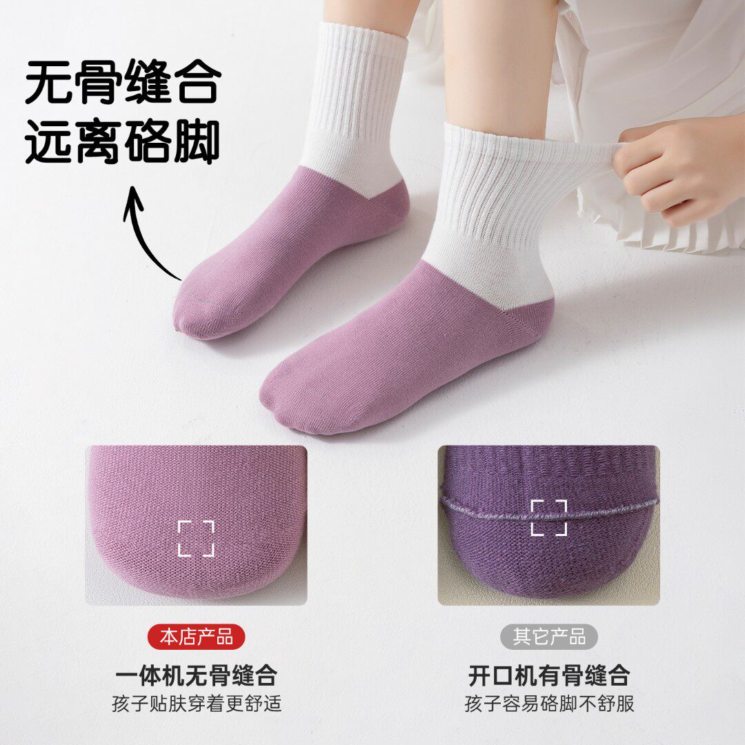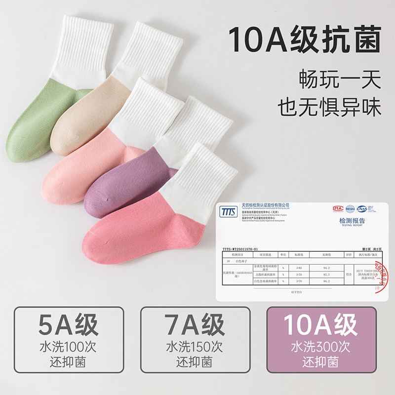 100%棉a类女童袜子秋冬季纯棉抗菌防臭秋季女孩无骨抗起球中筒袜
