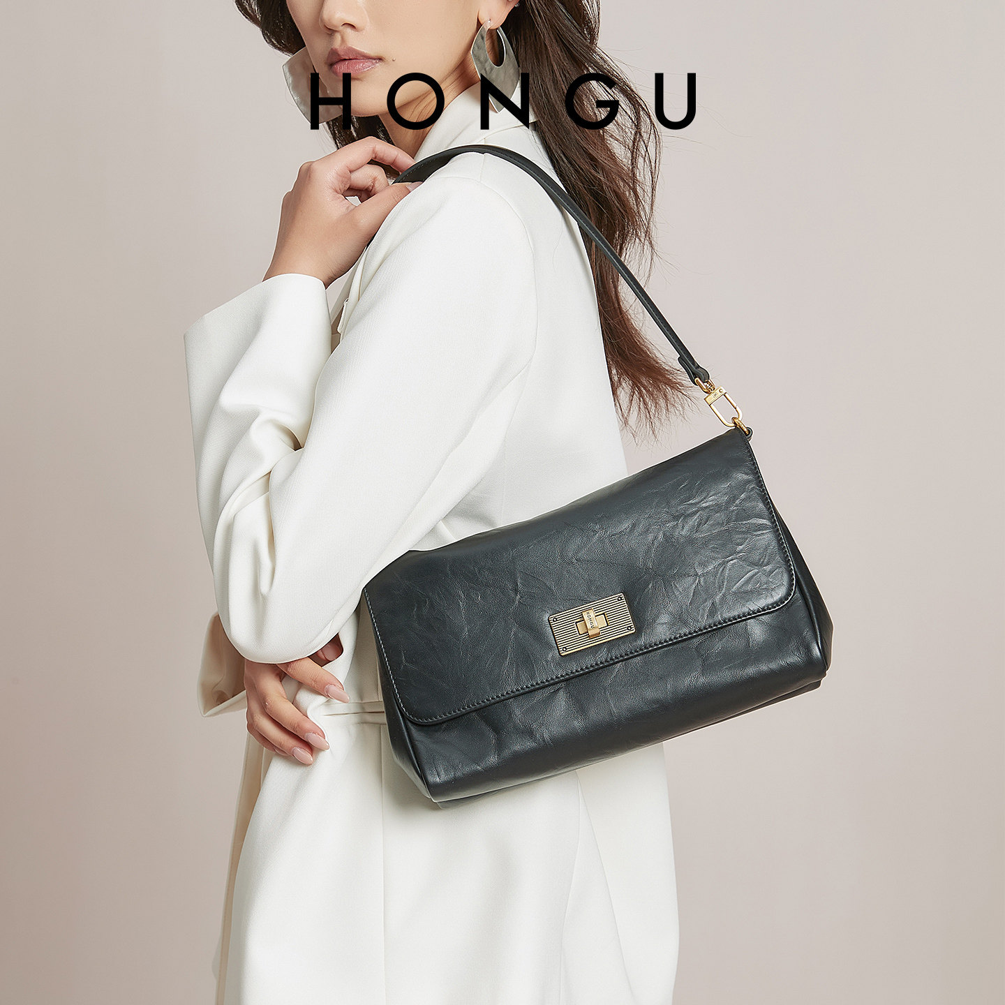 红谷包包2026新款质感真皮单肩腋下包通勤高级感斜挎包牛皮女士包