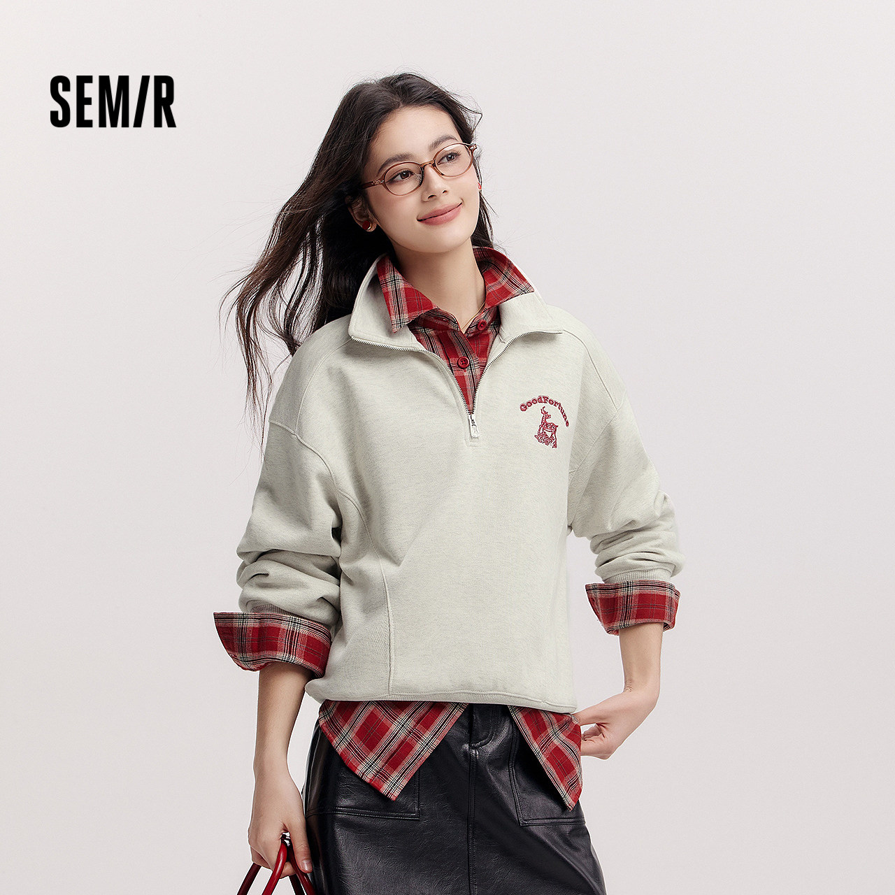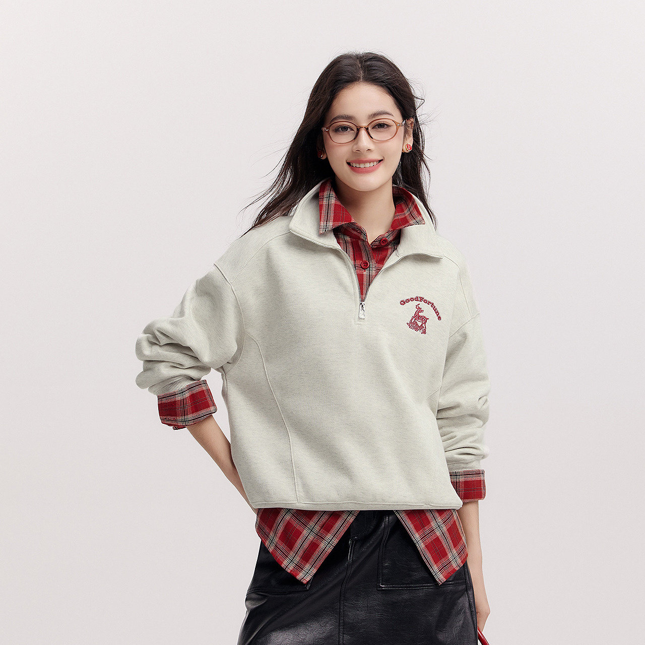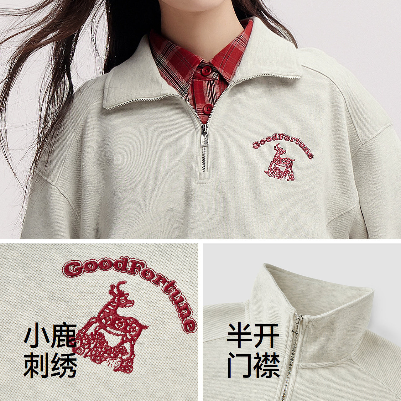森马张仁华非遗联名卫衣女春半拉链立领宽松刺绣简约时尚显瘦上衣