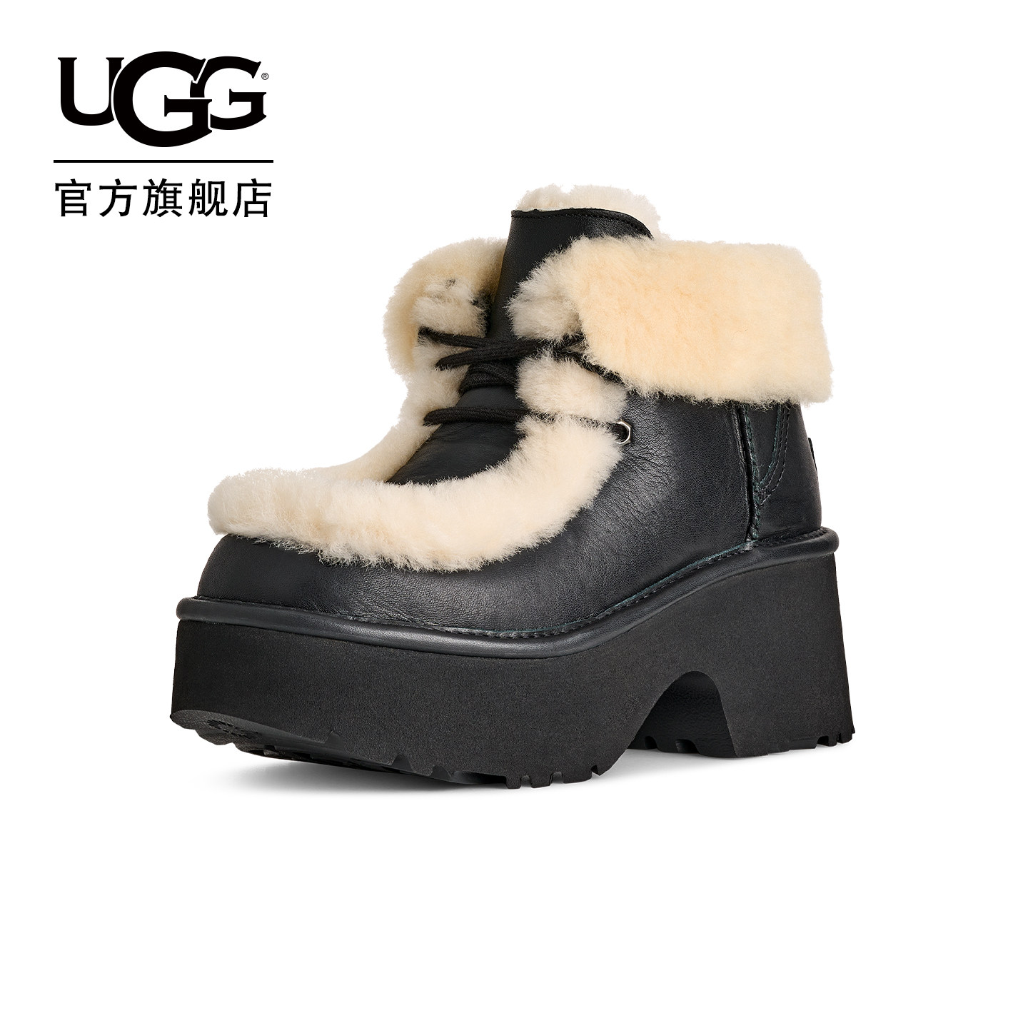 UGG秋冬新款女士舒适时尚厚底坡跟圆头溢毛系带雪地靴短靴1176110