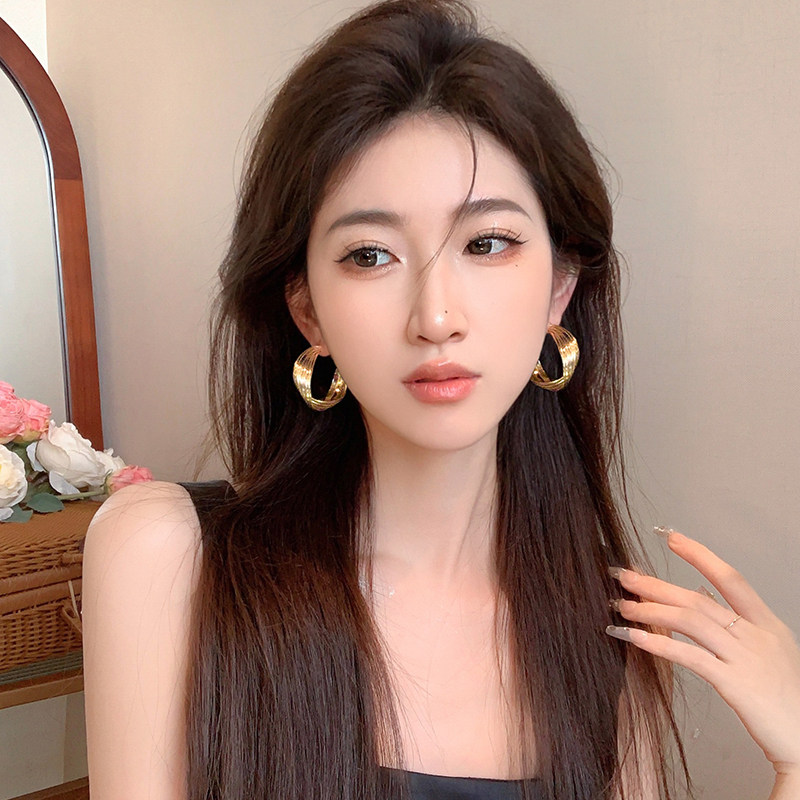 欧美法式夸张大圈圈耳环高级感耳圈银色耳饰2025新款爆款耳扣耳钉