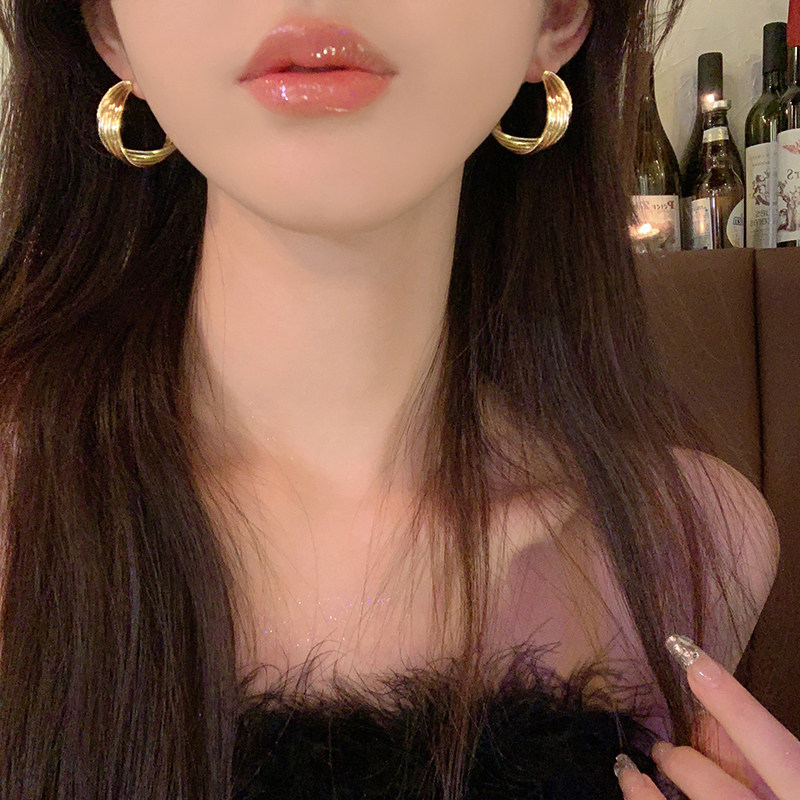 金色拉丝几何耳环2025新款爆款高级感轻奢小众气质耳扣女秋冬耳饰
