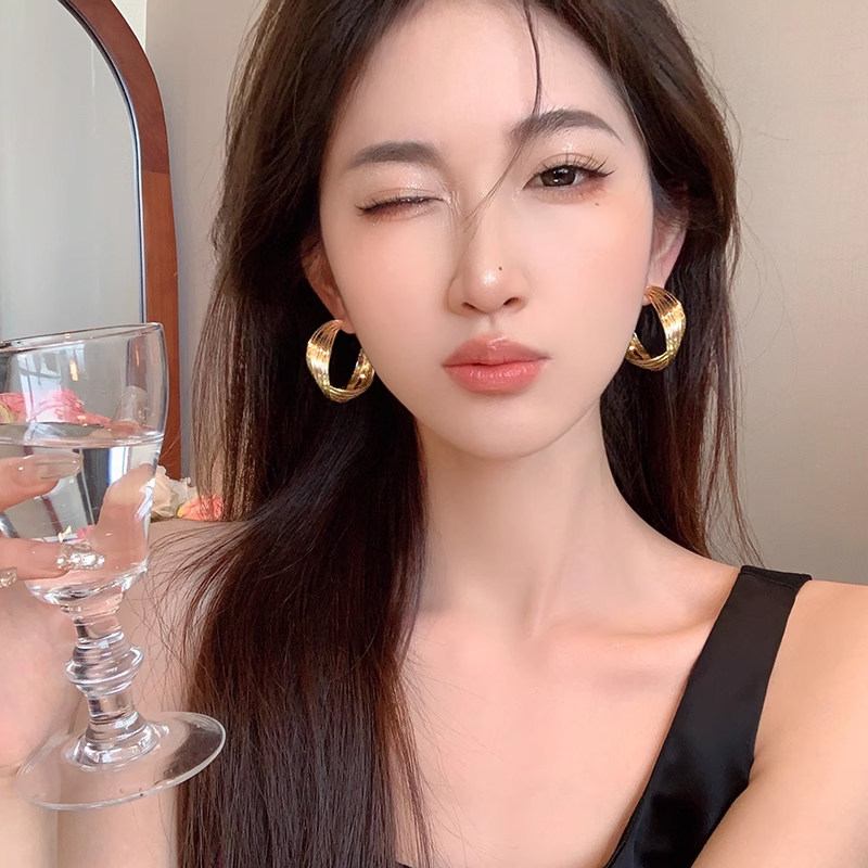 高级感金色复古港风方圆脸圈圈耳环轻奢小众设计网红耳钉耳圈耳饰