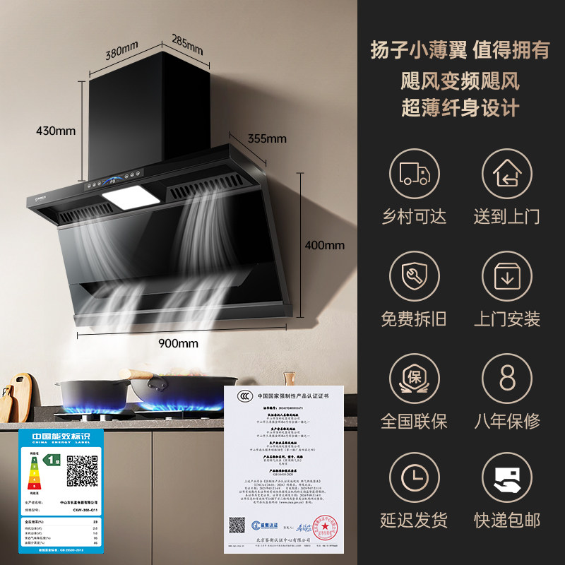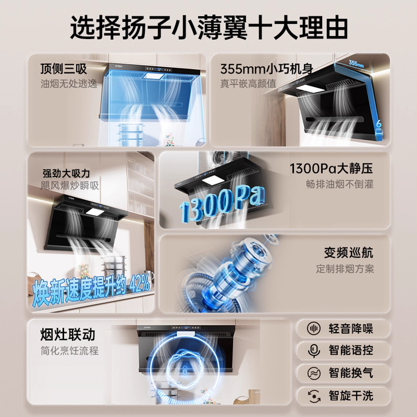 【政府补贴】扬子顶侧双吸抽油烟机家用厨房大吸力一级变频吸烟机