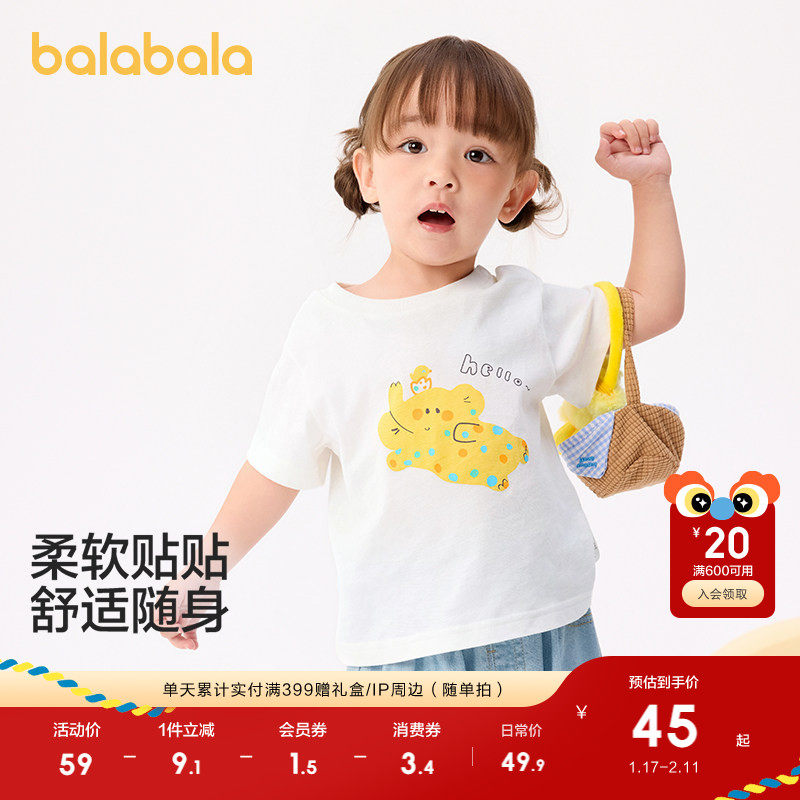 巴拉巴拉婴儿t恤宝宝上衣男女童短袖2025新款夏简约休闲百搭上衣