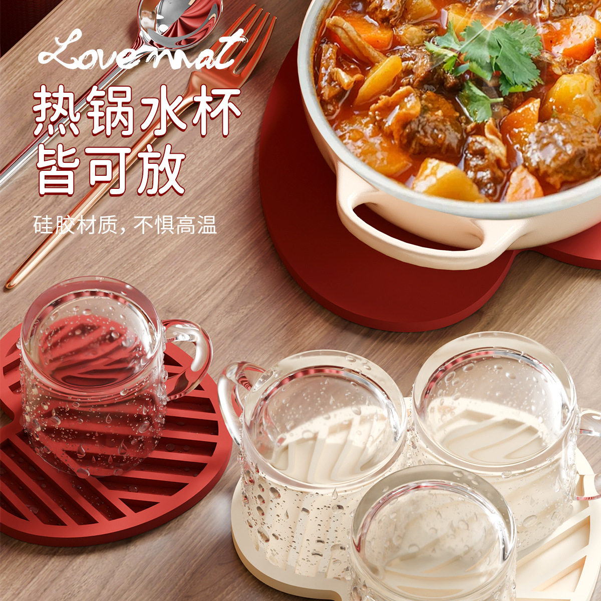 爱心杯垫厨房用餐桌柔韧加厚餐垫防油防烫硅胶防滑多用途隔热垫