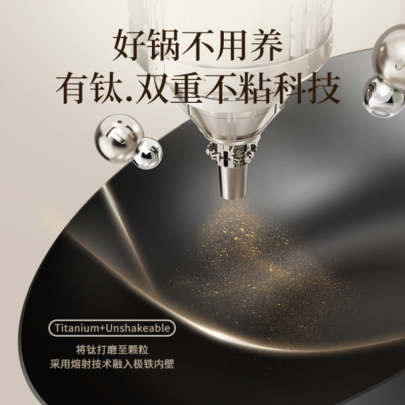 【商超同款】苏拉食光钛进口极铁炒锅铁锅0氟不粘锅家用炒菜锅