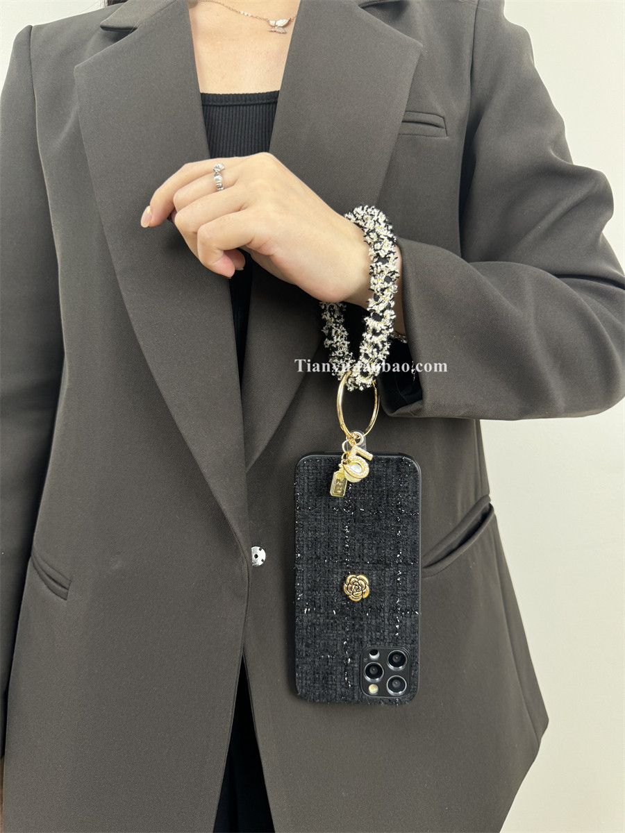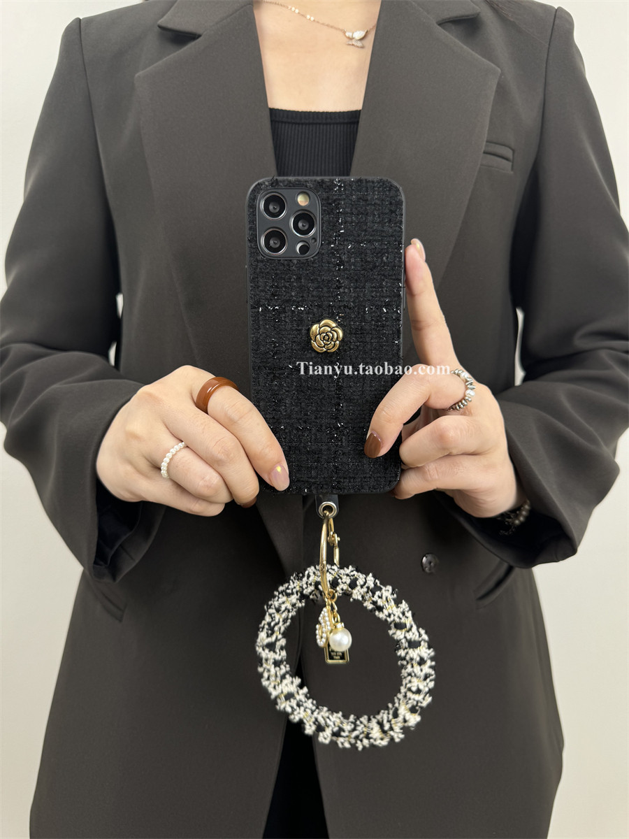 恬妤 奢华山茶花适用于iphone16promax手机壳苹果15pro小香风手环13promax斜挎绳12pro侧背xsmax新款11promax