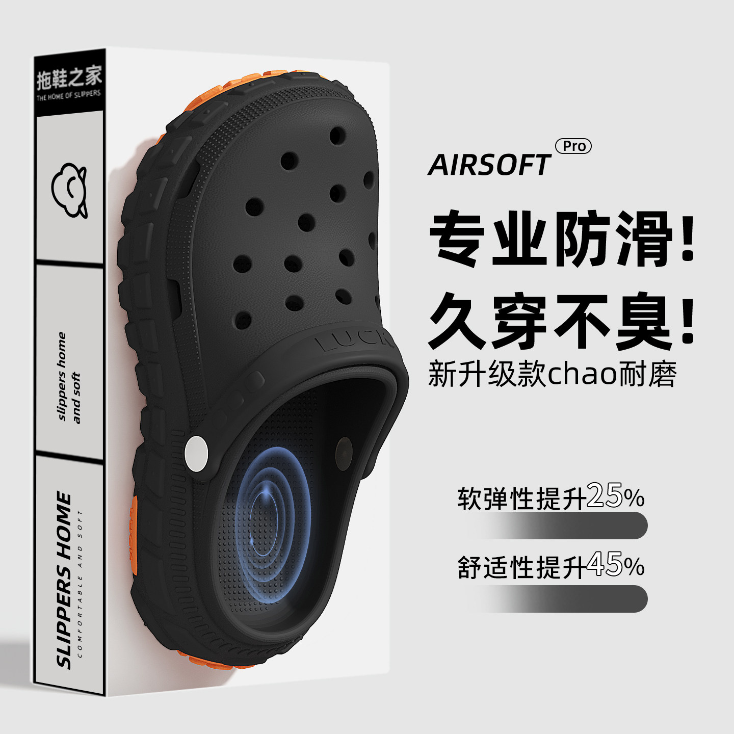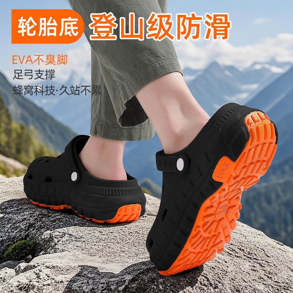 洞洞鞋男士防滑夏季2025新款踩屎感增高沙滩鞋包头户外凉鞋女外穿