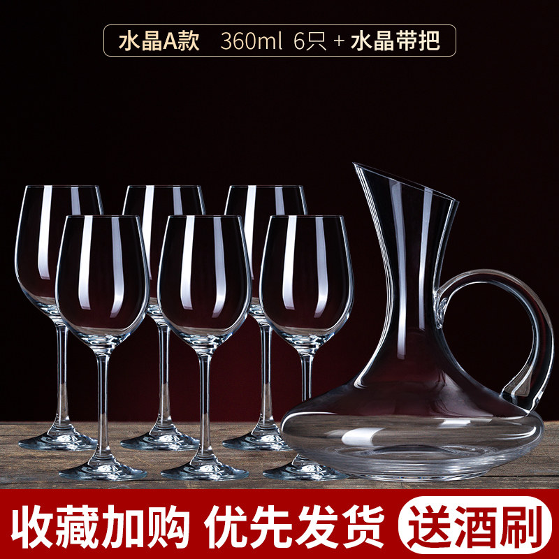 红酒杯套装家用6只水晶葡萄酒杯醒酒器北欧2个高端高脚杯架子酒具