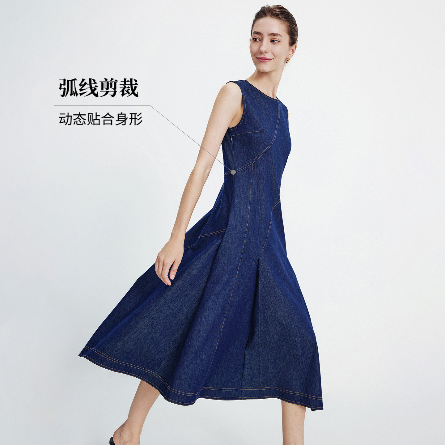 Navigare意大利小帆船无袖连衣裙女2026春夏新款收腰复古牛仔裙子