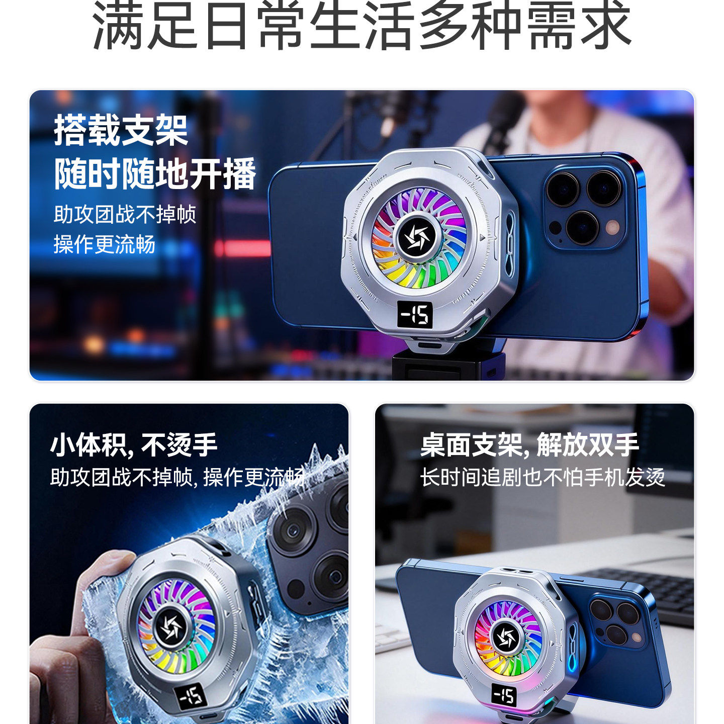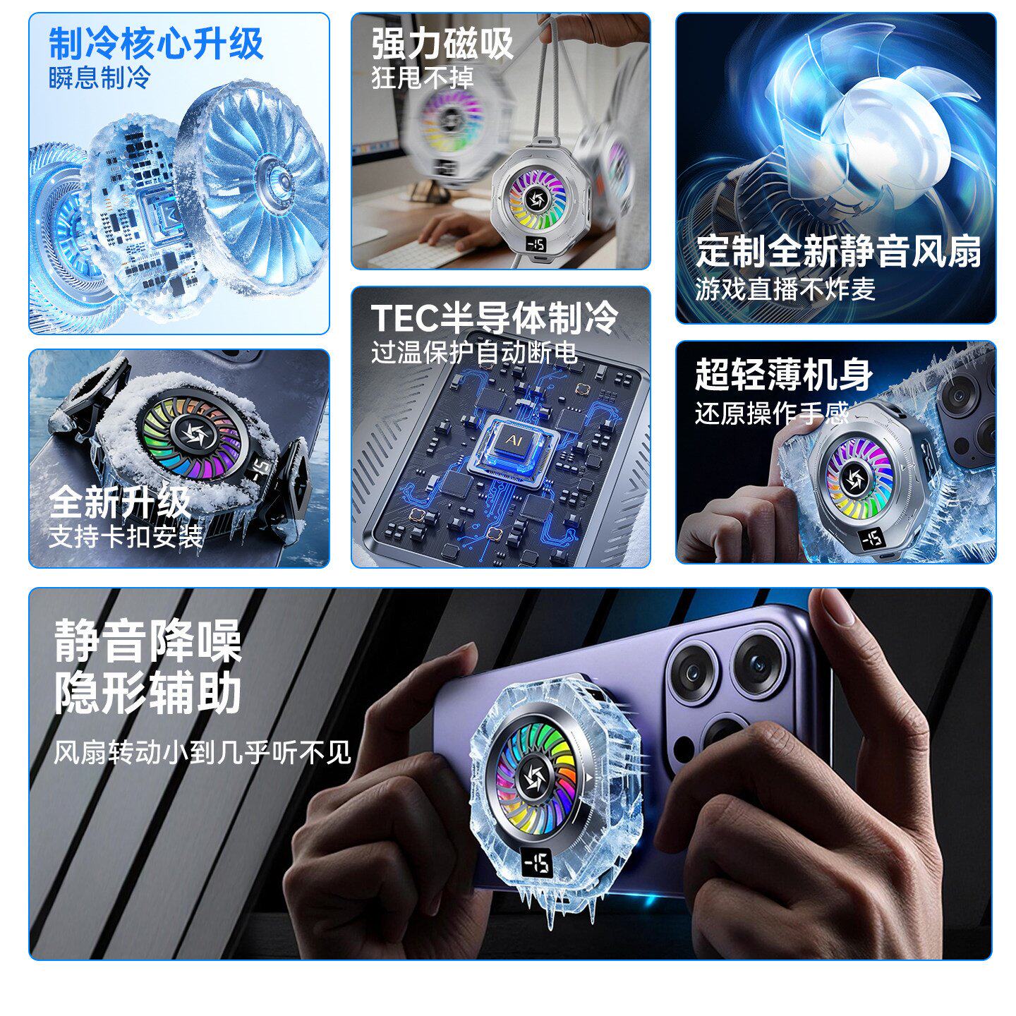 手机散热器磁吸式半导体制冷降温神器超静音冰封背夹适用iPhone苹果14/15吃鸡游戏直播专用散热背夹冷风扇贴