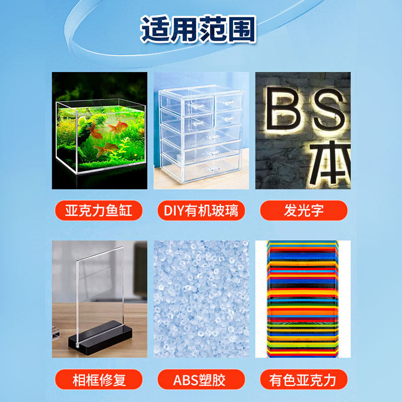 亚克力专用胶水分析纯pmma有机玻璃鱼缸pla粘亚克力板修补胶pc板专用粘合剂ps板快干透明无影无痕胶亚克力胶