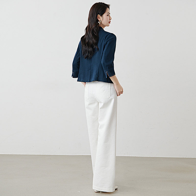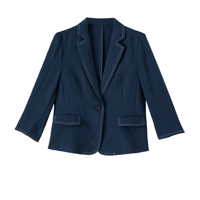 晚白2026年春新款平驳领棉麻感西装精简通勤小个子显高短外套女
