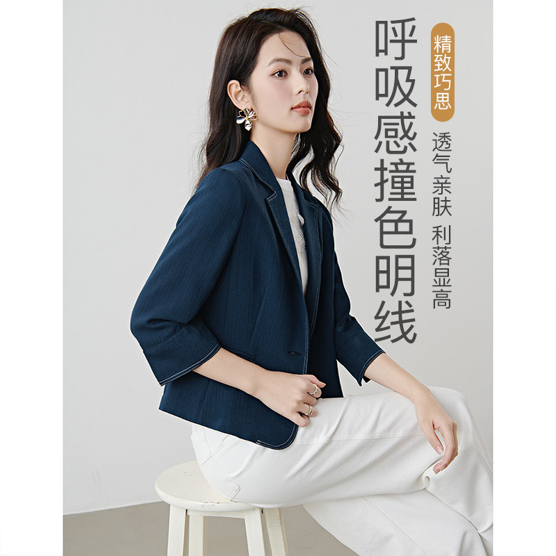 冰感缎西装女短款七分袖春夏秋百搭显瘦小个子长袖薄西服上衣外套