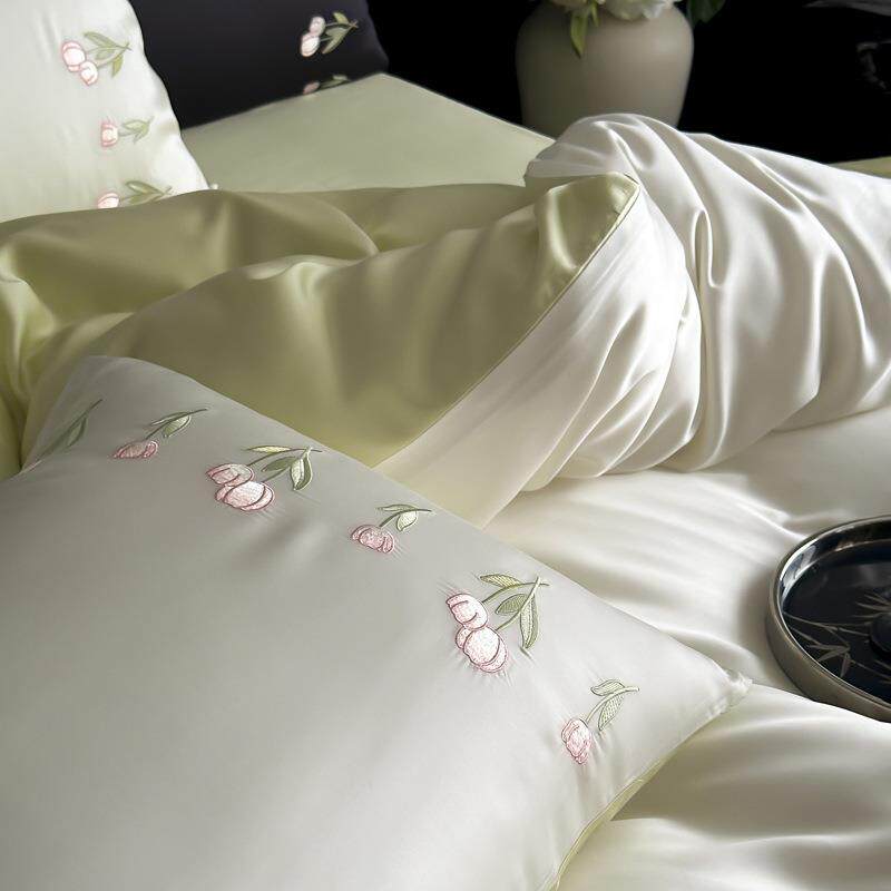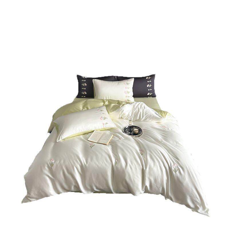 夏天小清新60支兰精天丝四件套夏季刺绣冰丝凉感莱赛尔纤维床品