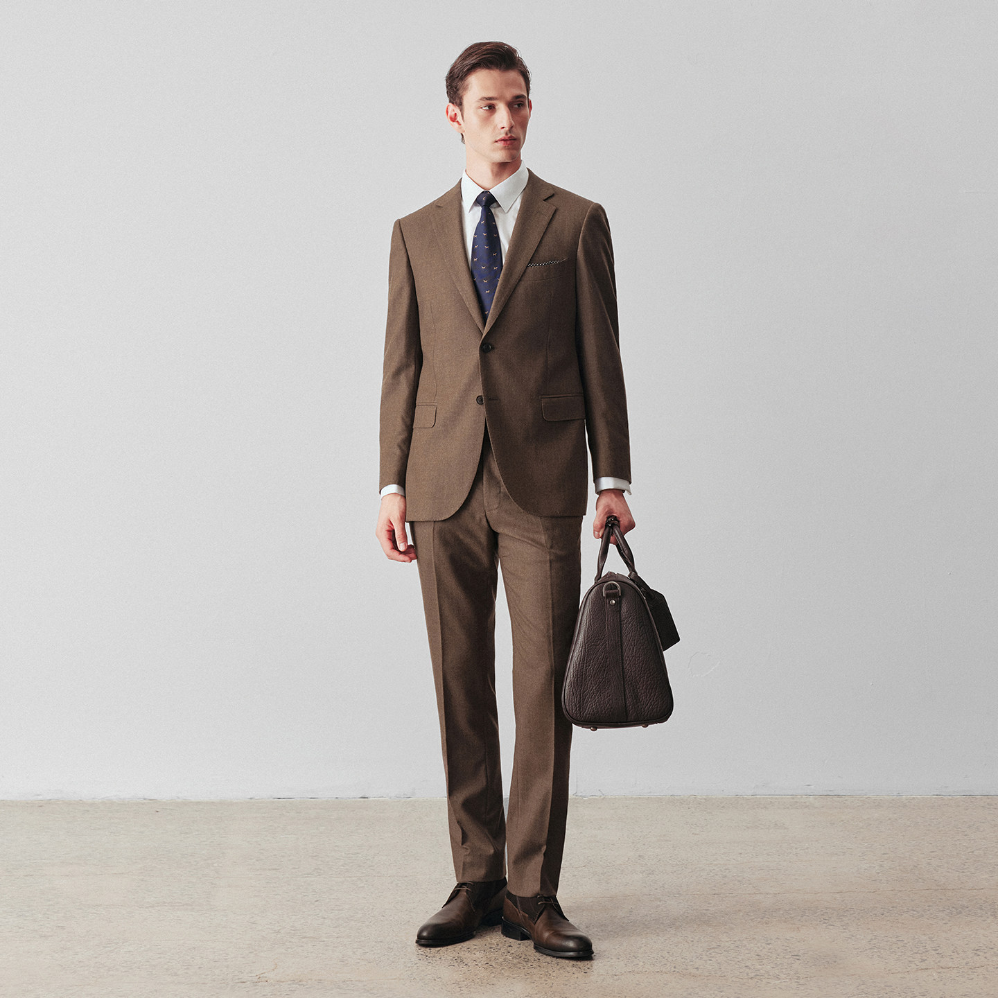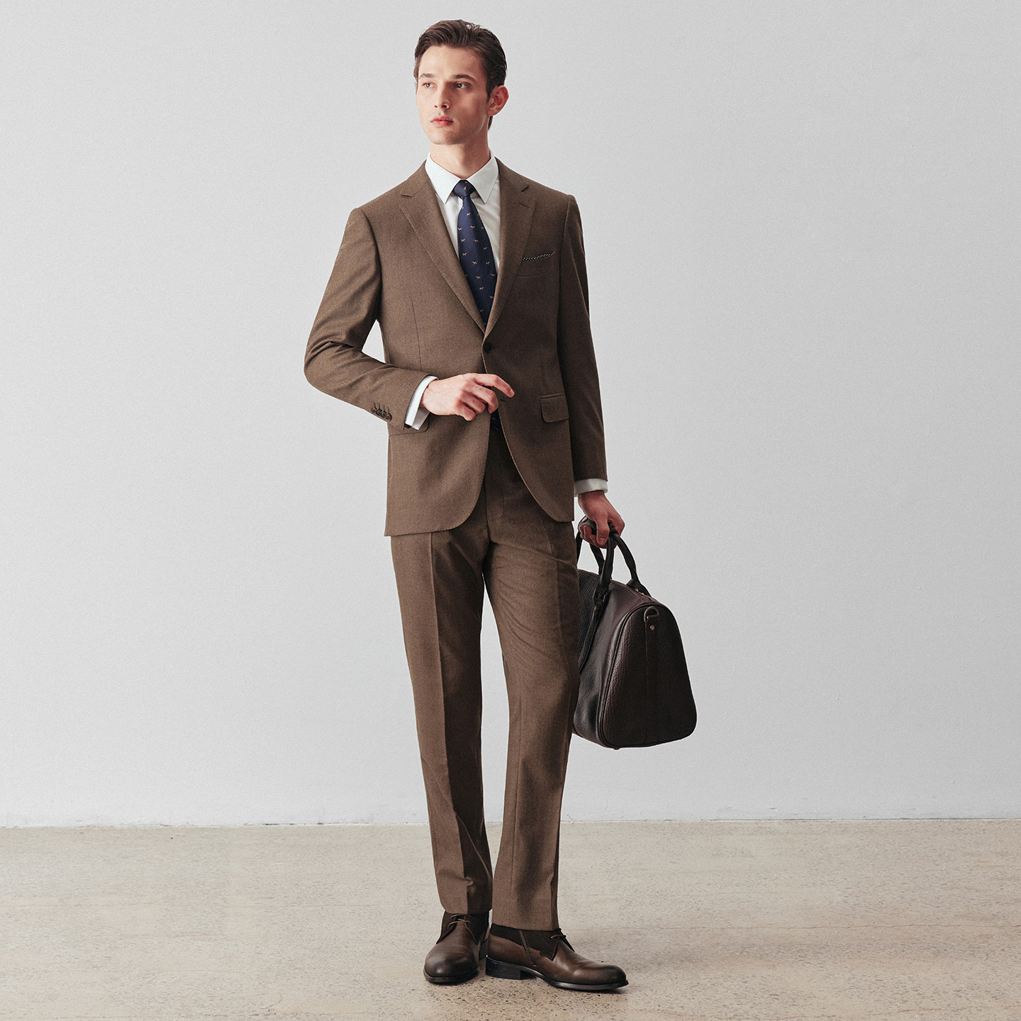 柏品纯羊毛法兰绒西服套装男秋冬保暖商务正装婚礼复古磨毛套西