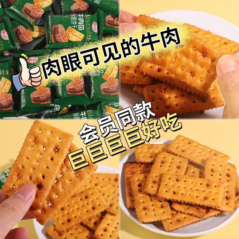 牛肉馅酥脆饼干营养早餐肉松夹心咸味苏打饼干休闲解馋零食小吃