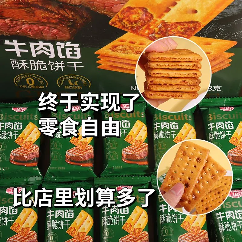 【香菇来了】嘉士利牛肉馅酥脆饼干356g夹心薄脆代餐咸味休闲