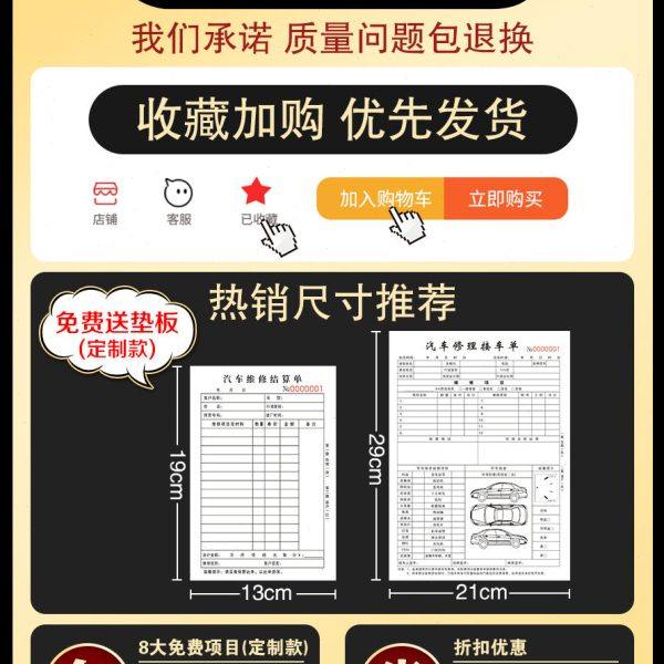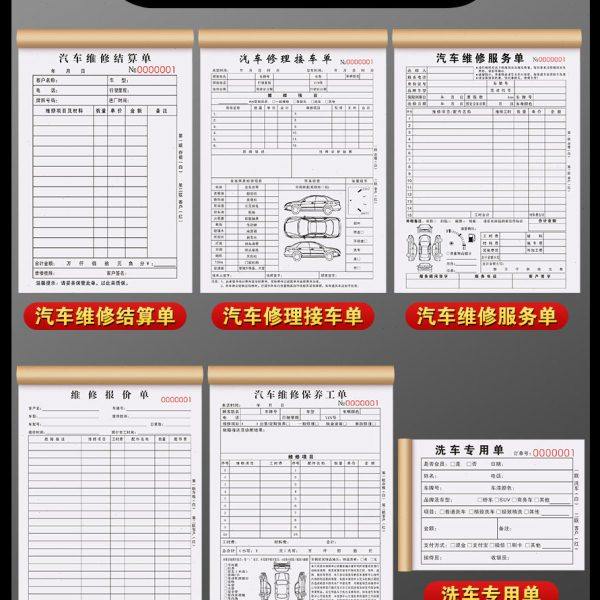 修理厂接车工单汽修店施工修车报价服务保养结算单据汽车维修清单
