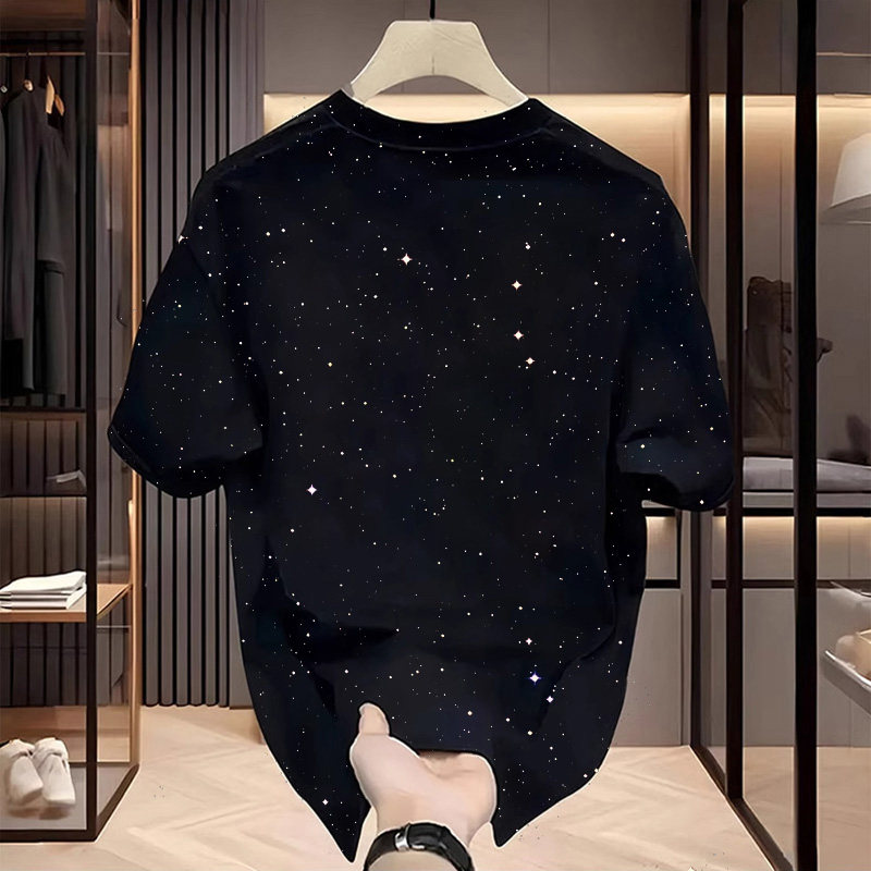 NASA联名男加大码2025春夏季打底衫细闪印花上衣圆领纯棉短袖T恤