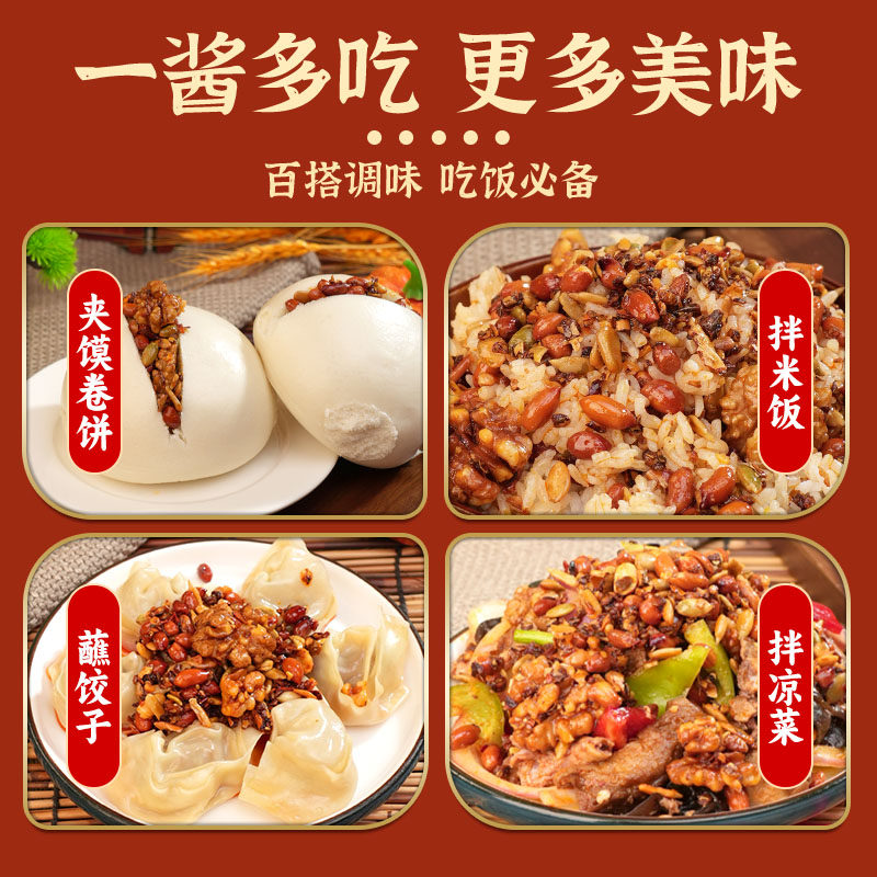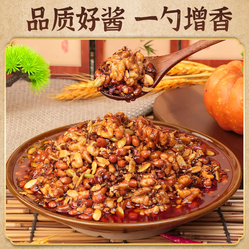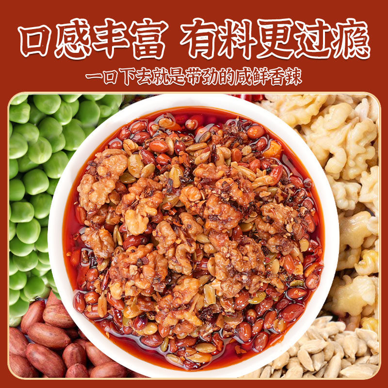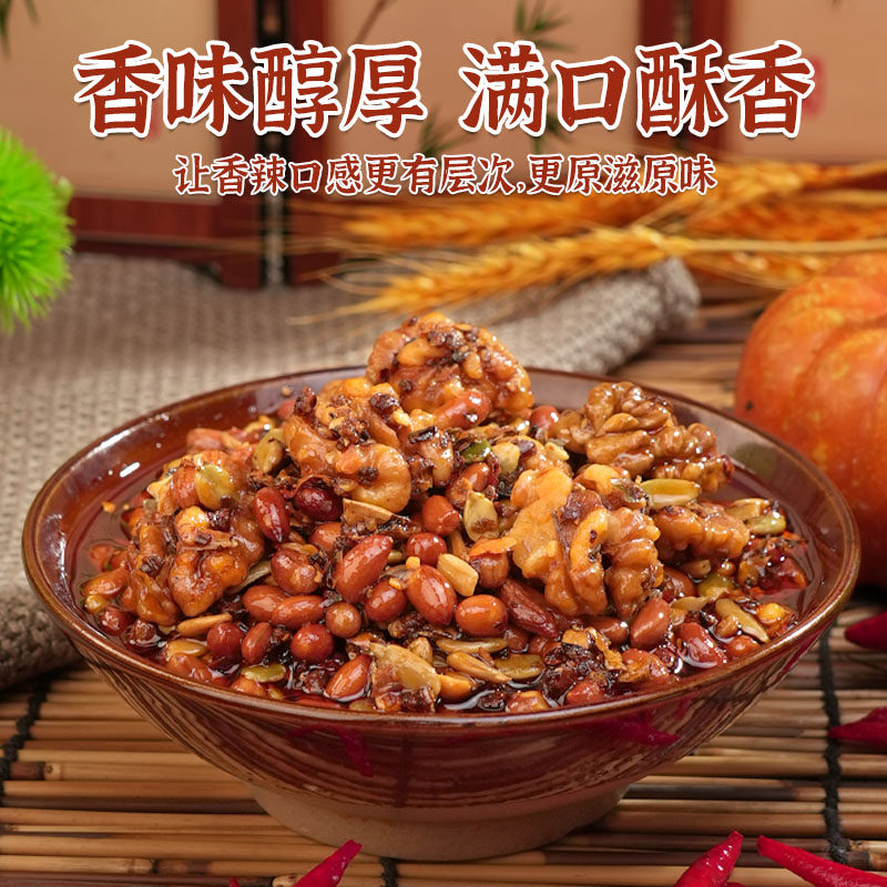 香辣瓜子仁花生核桃坚果辣椒碎香辣酥脆下饭酱拌面【无添加剂】