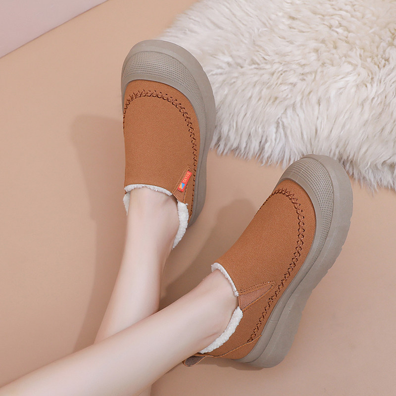 低帮厚底雪地靴女2025新款冬季懒人一脚蹬毛毛棉鞋加绒加厚女鞋子