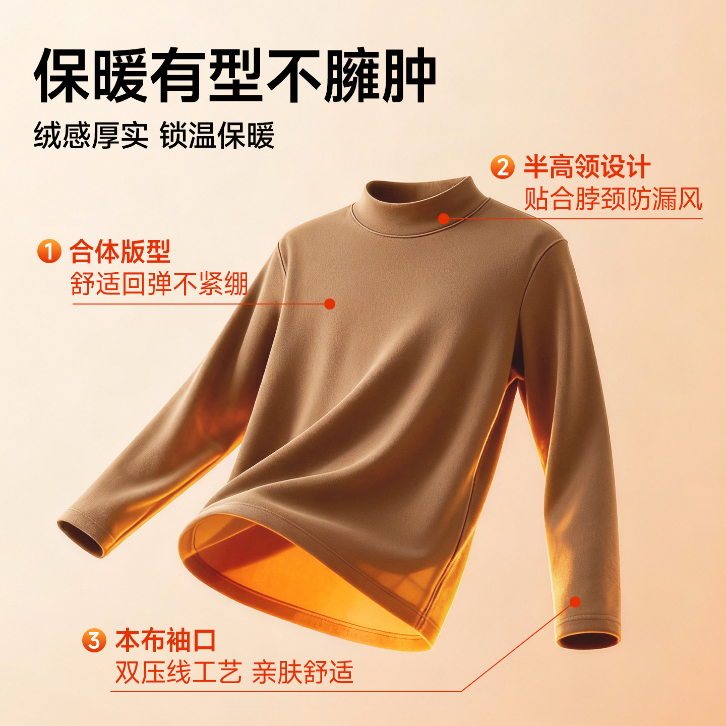 猫人冬季保暖加绒基础款打底衫2025抗菌科技内衣宽松百搭长袖T恤Y